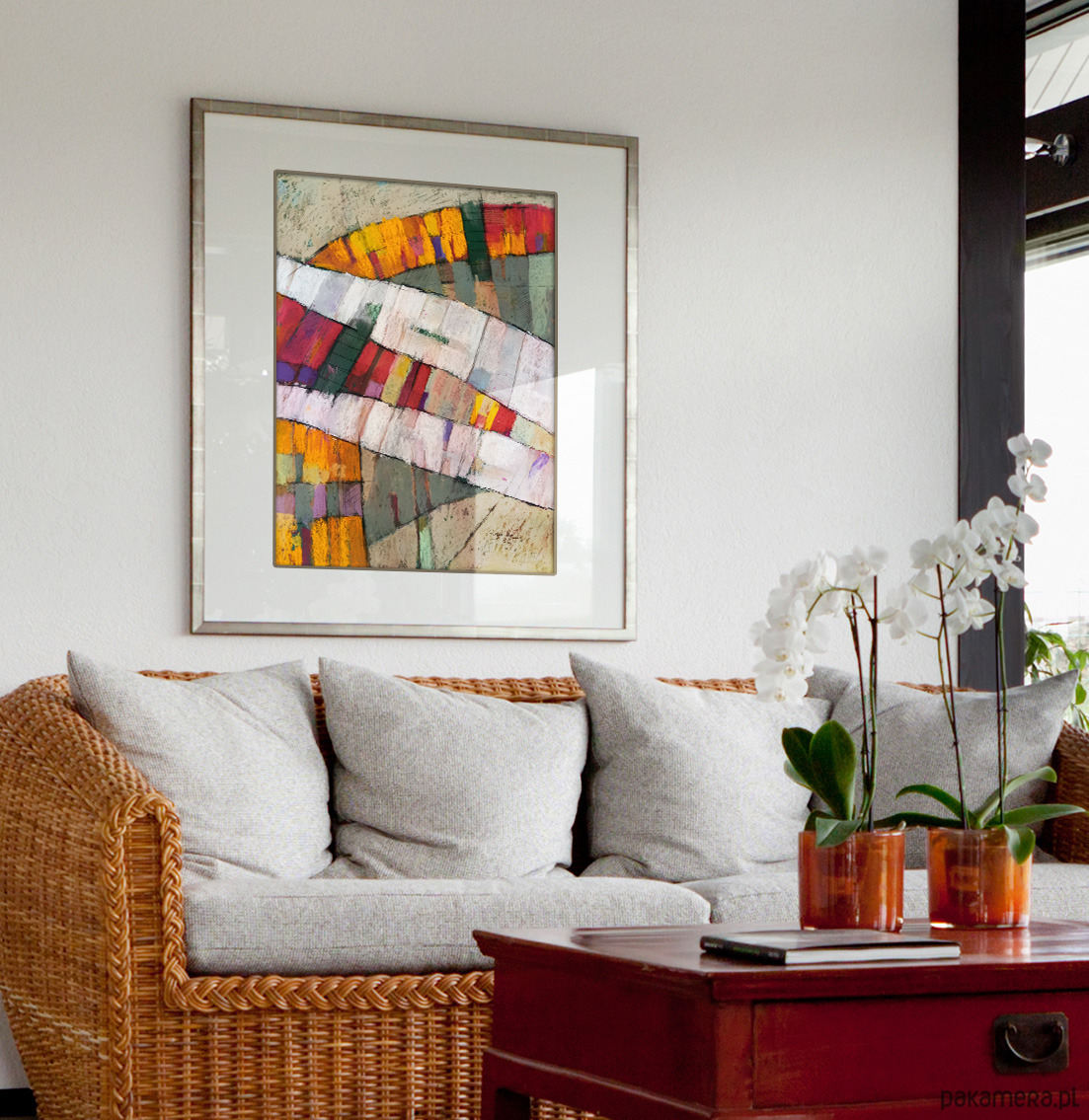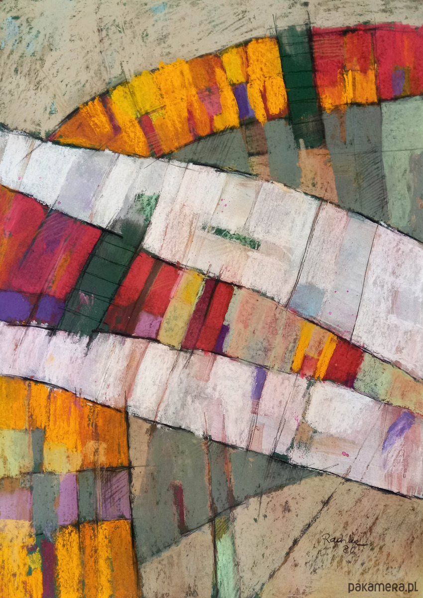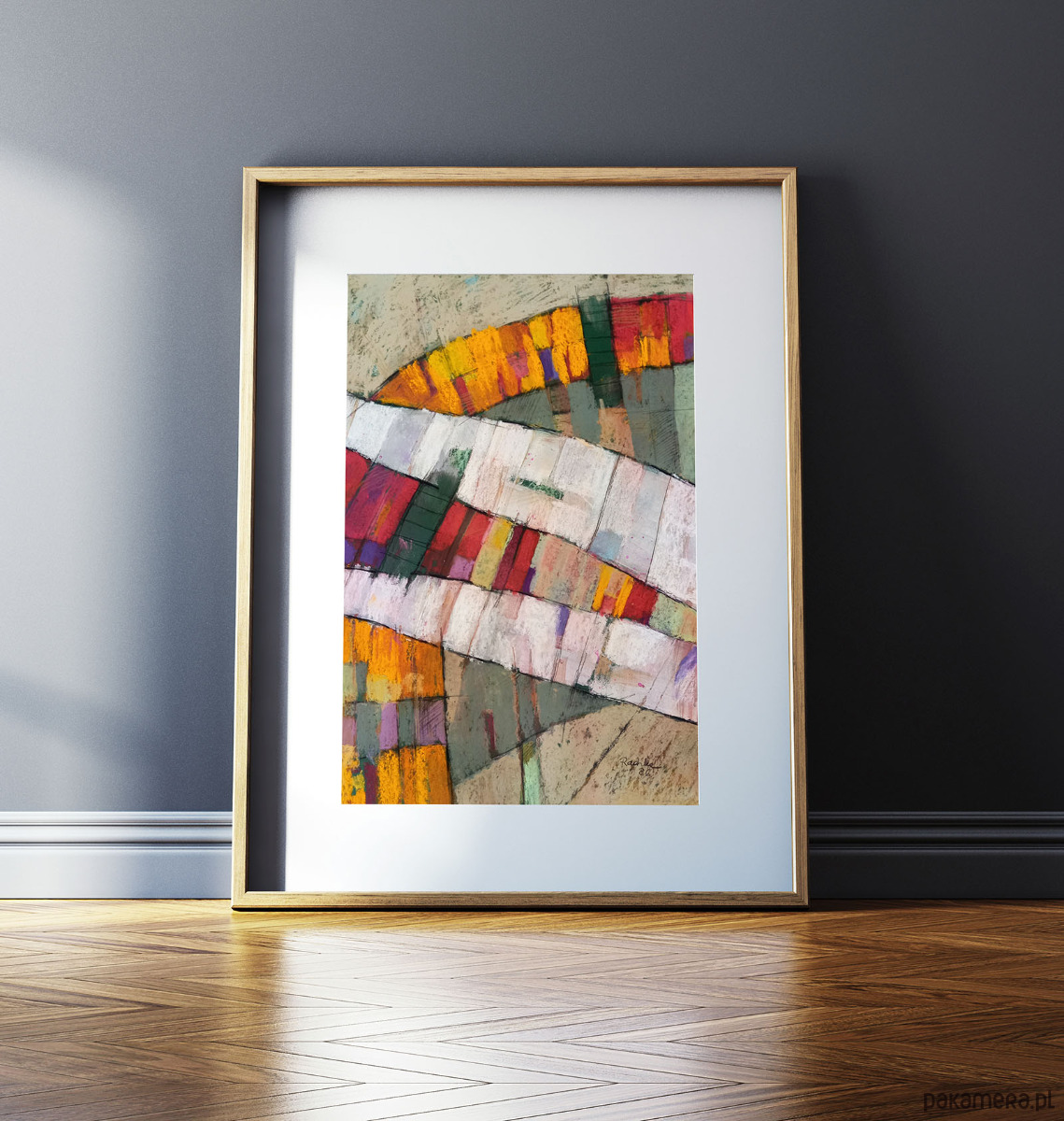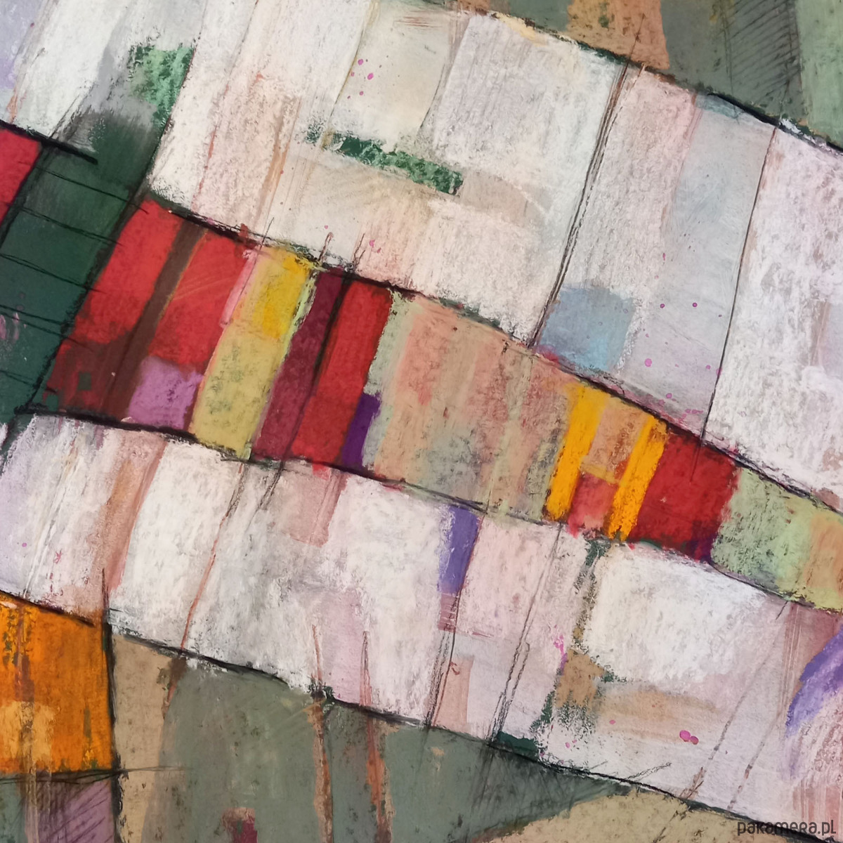 Rysunek wykonany pastelami suchymi, węglem, akrylami, kredkami akwarelowymi i tuszem na brystolu 50x70 cm, zabezpieczony fiksatywą, bez ramy. Ciut złotej kredki. Na życzenie tworzę symulację kolorystyczną passe partout pasującego do rysunku. Kolory mogą nieznacznie odbiegać od oryginału w zależności od ustawień monitora. Pracę wysyłam w tubie przesyłką priorytetową lub inpostem.