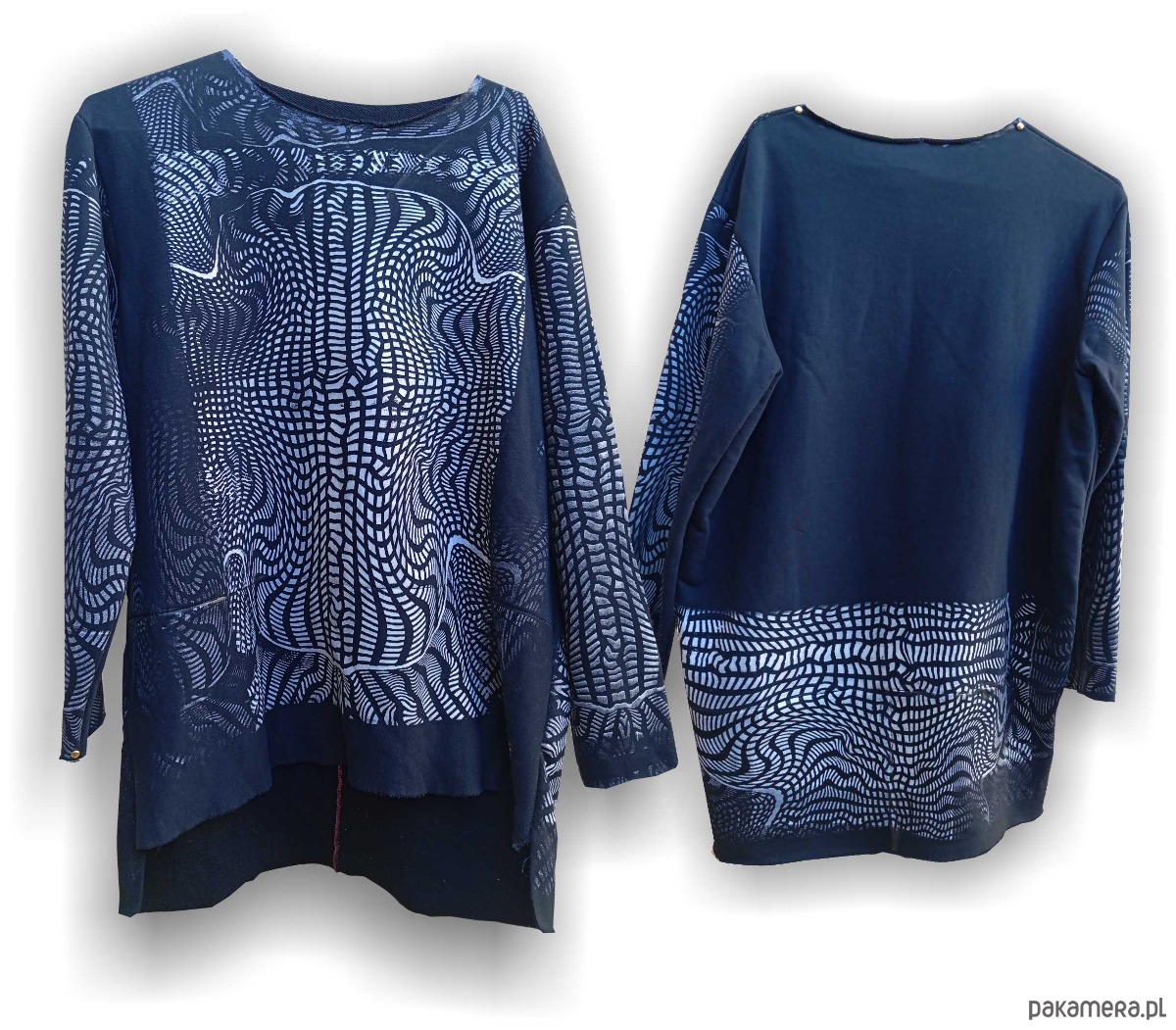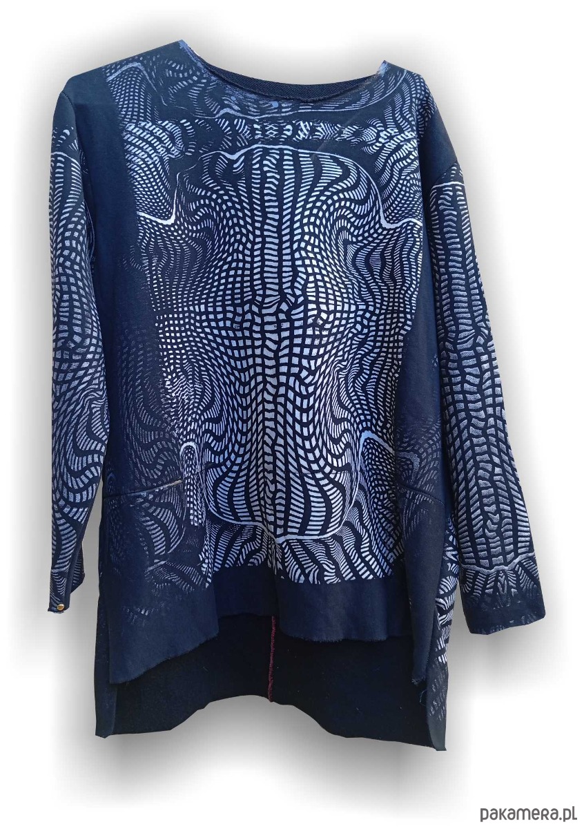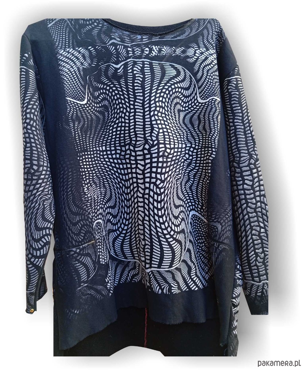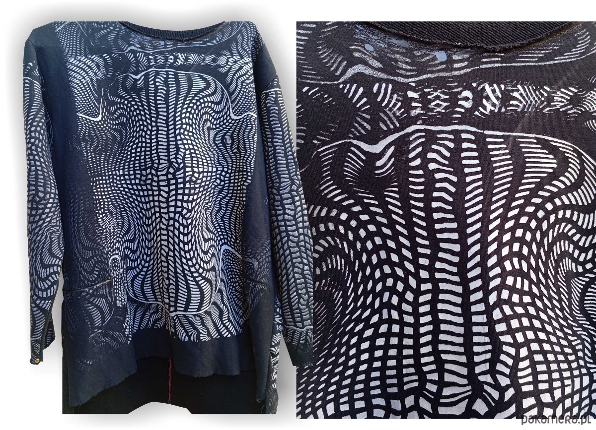 bluza z upcyclingowego materiału , polska pentelka z łódzkiej dziewiarni recznie drukowana, gruba gm 340 //