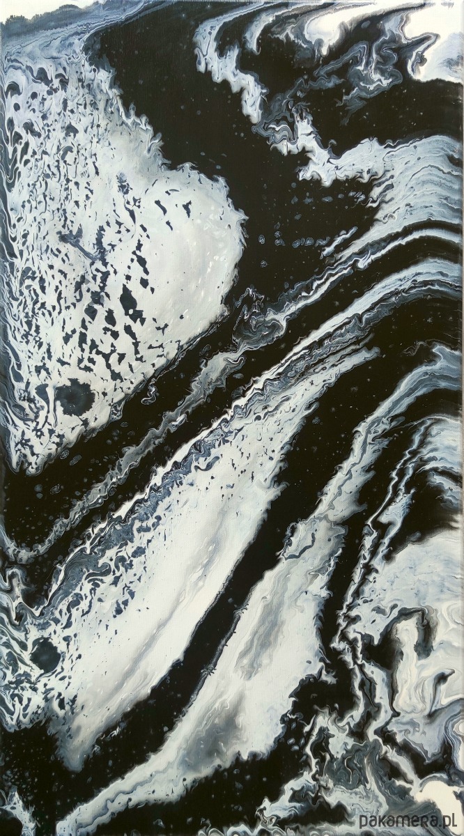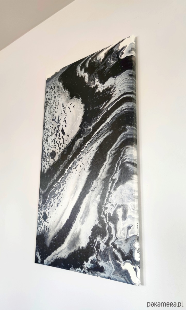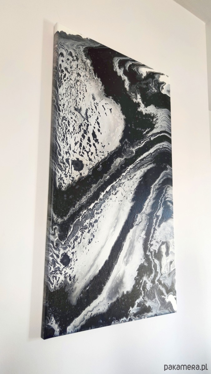 GEODE II. Obraz abstrakcyjny malowany farbami akrylowymi na podobraziu bawełnianym produkcji polskiej.