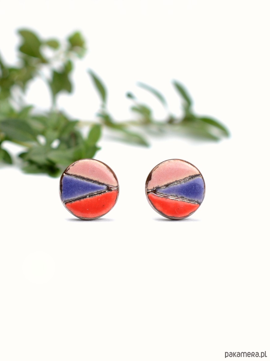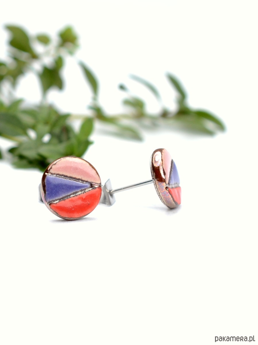Geometria fiolet róż czerwień - ceramiczne kolczyki sztyfty