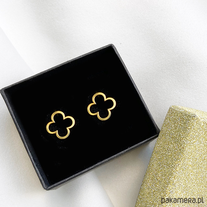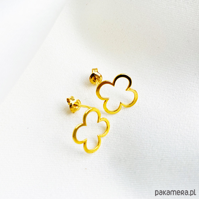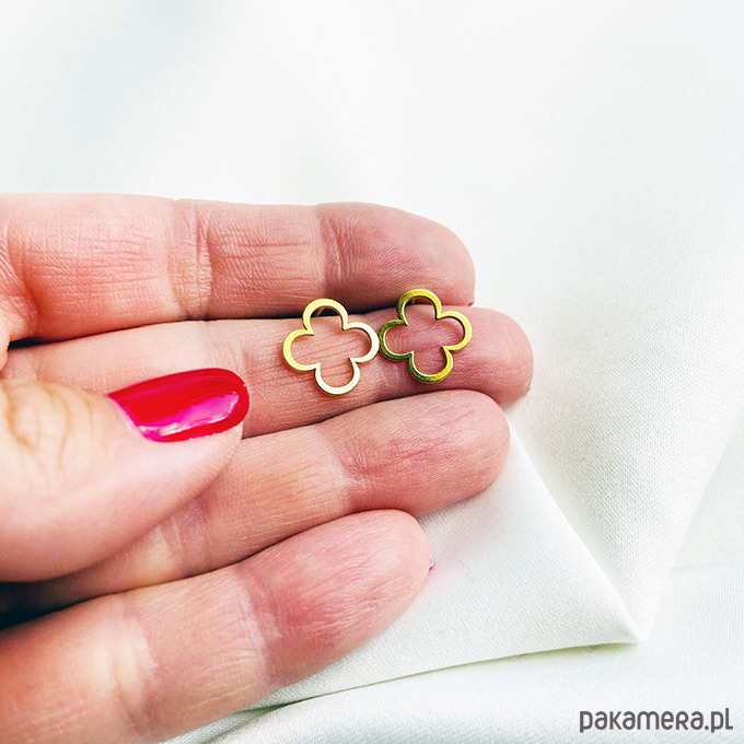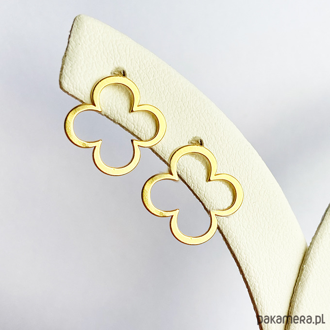 Geometryczne Kolczyki koniczynki, srebro pozłacane sztyfty