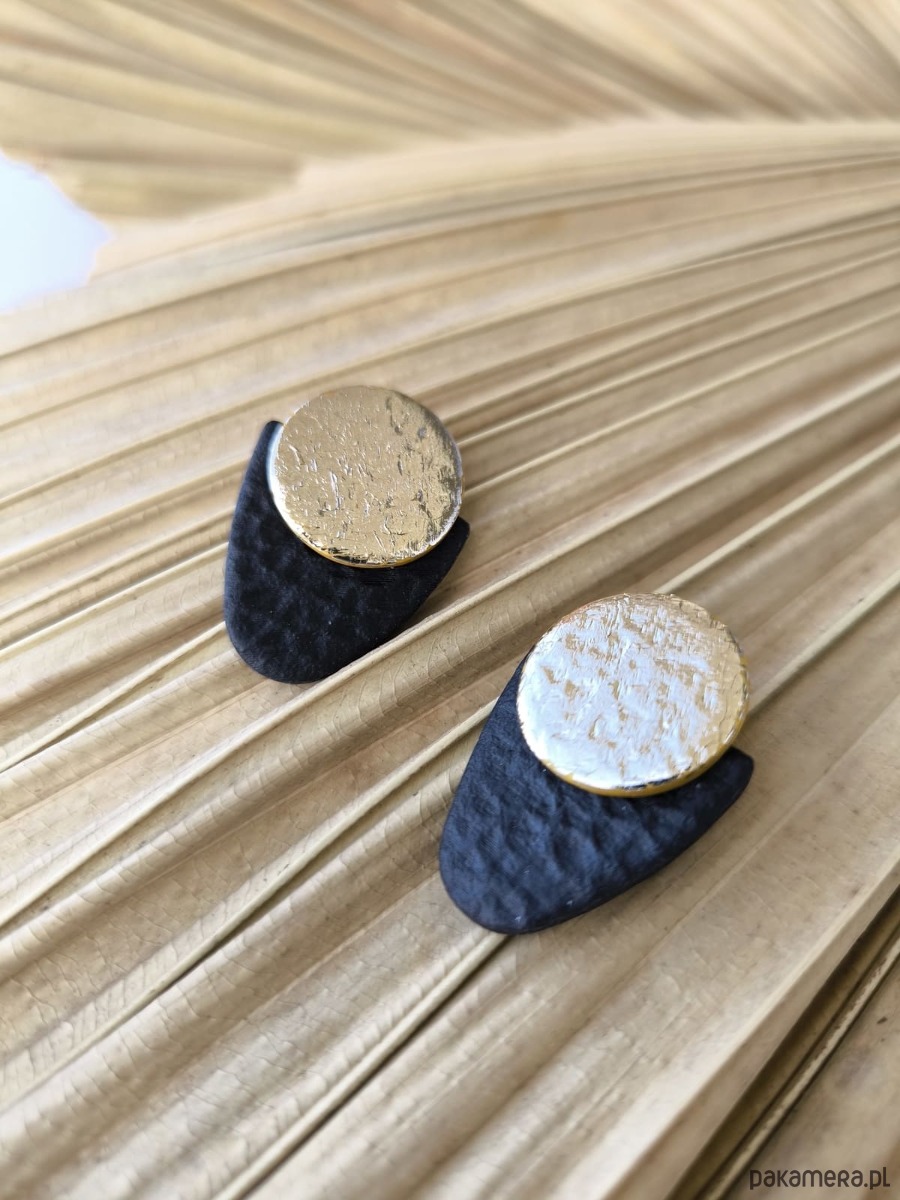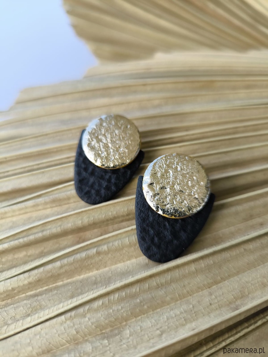 Czarne geometryczne kolczyki sztyfty z efektem skóry
