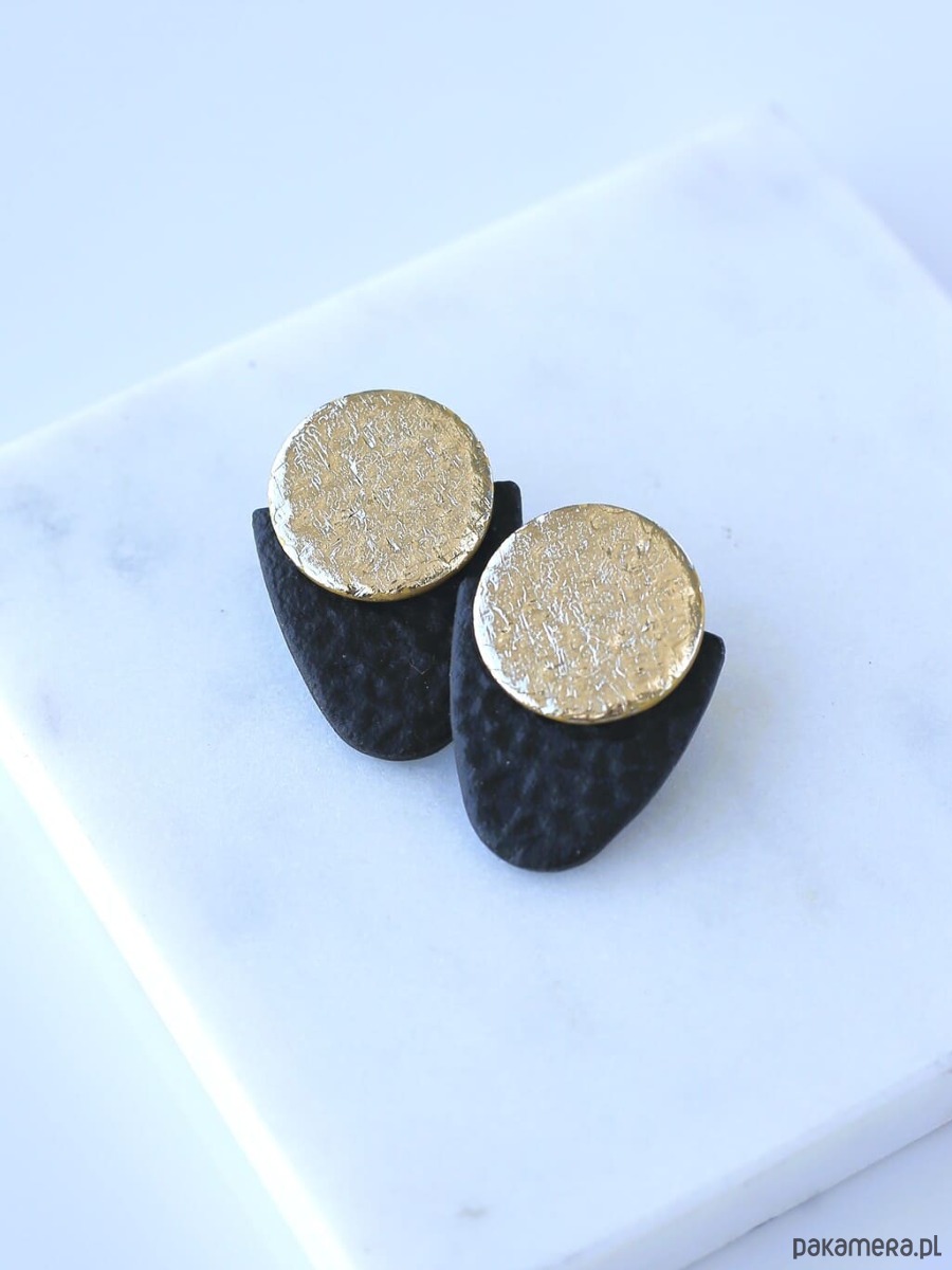 Geometryczne kolczyki LEATHER ze złotkiem