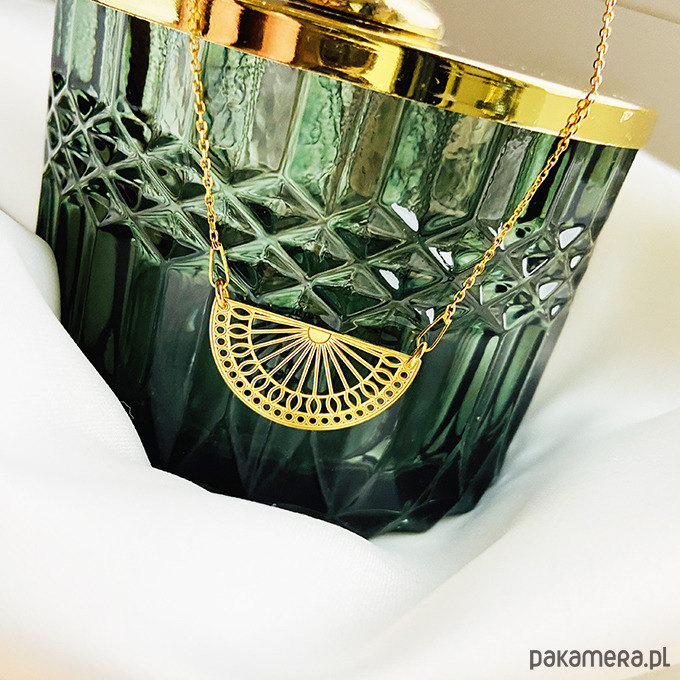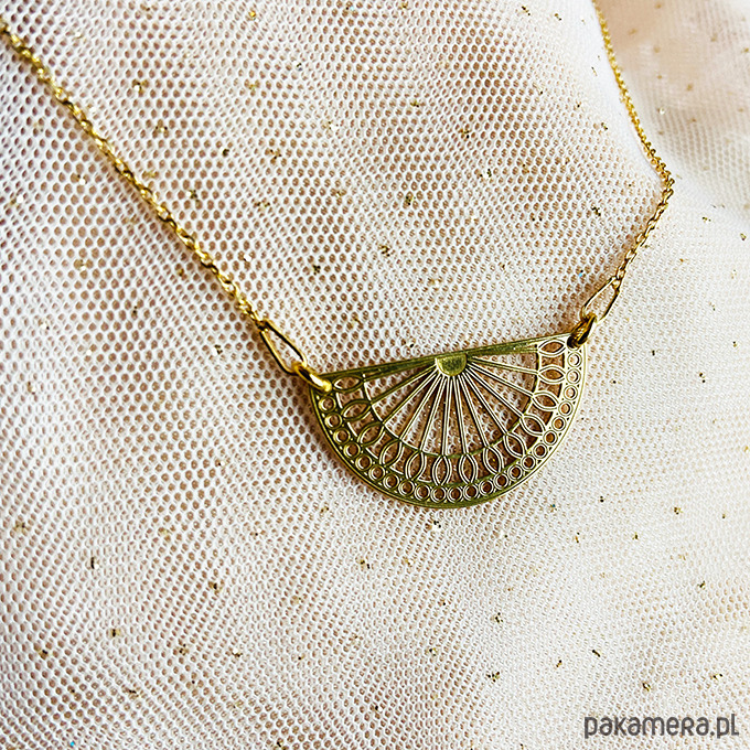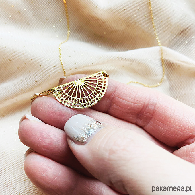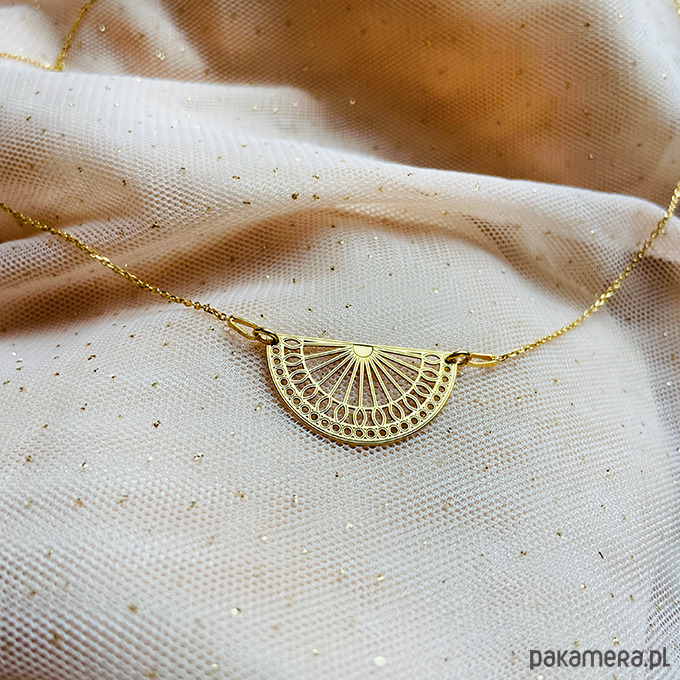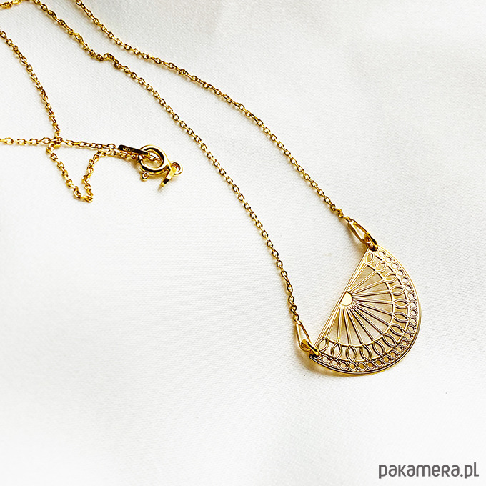 Unikatowy naszyjnik z pięknym geometrycznym elementem w kształcie geometrycznego półkola , inspirowany sztuką art deco. Unikalny design, piękne wykonanie. Delikatna i efektowna biżuteria wykonana ze srebra próby 925 .