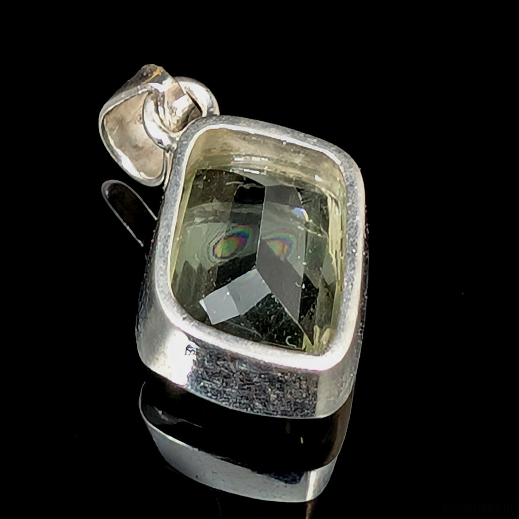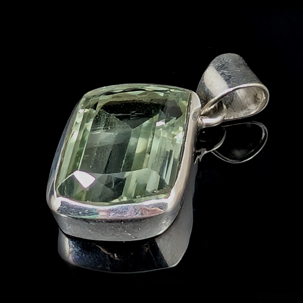 Bardzo elegancki wisior wykonany ze srebra próby 925 oraz zielonego kryształu ametystu o precyzyjnym szlifie. Przepiękny okaz. Wymiary oprawy kamienia 25 x 21 mm. Długosć max 37 mm. Waga 13 g. Wykonany przez dostawcę kamieni. Wisior zostanie wysłany w ozdobnym pudełeczku.