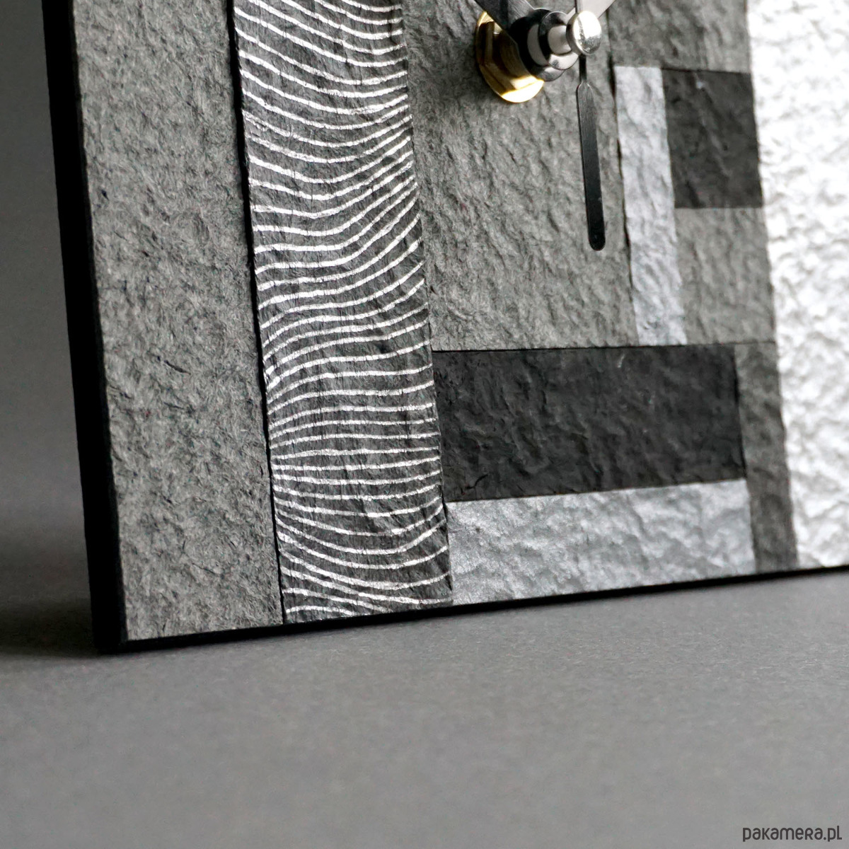 Unikatowy zegar stojący ze wzorem mozaiki wykonany ręcznie zgodnie z ideą less waste - z papieru z odzysku.