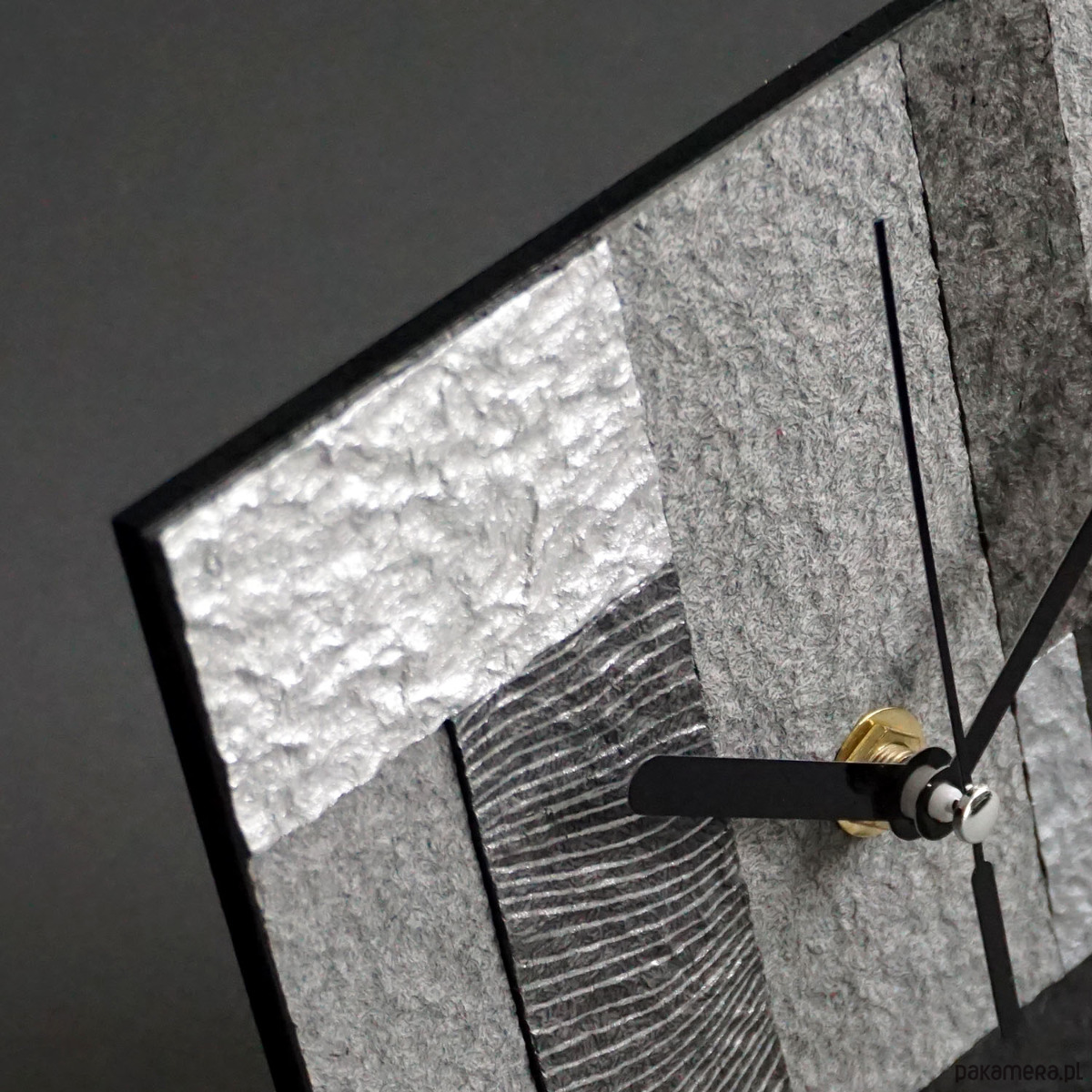 Arkusze, z których powstają zegary wykonuję w niewielkich partiach dlatego mogą się minimalnie różnić odcieniem, grubością i fakturą; mogą też mieć niewielkie pęknięcia, co dodatkowo unikatowy charakter każdego przedmiotu.