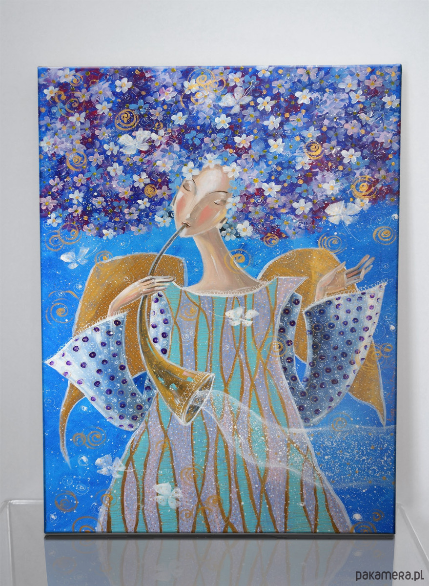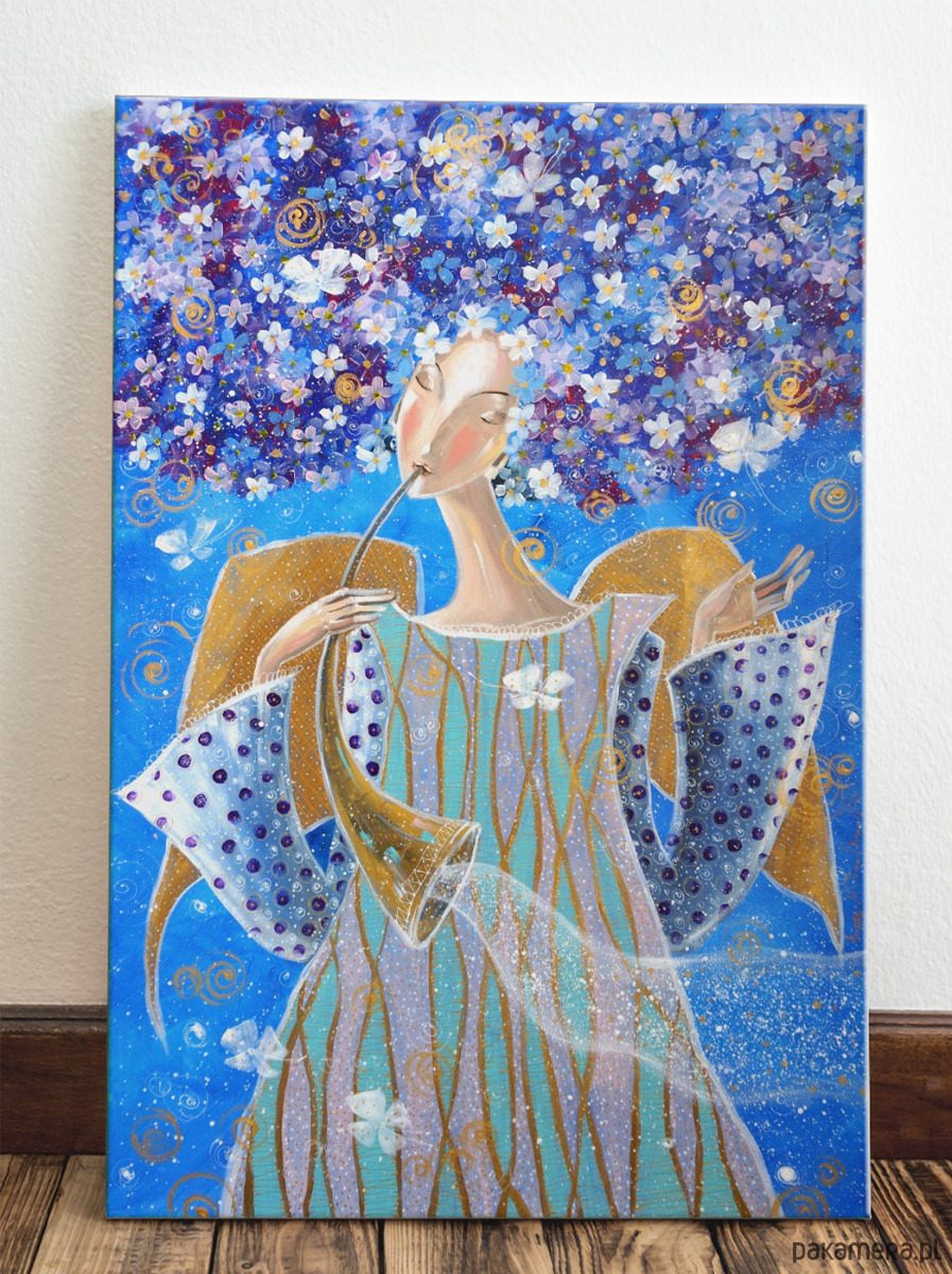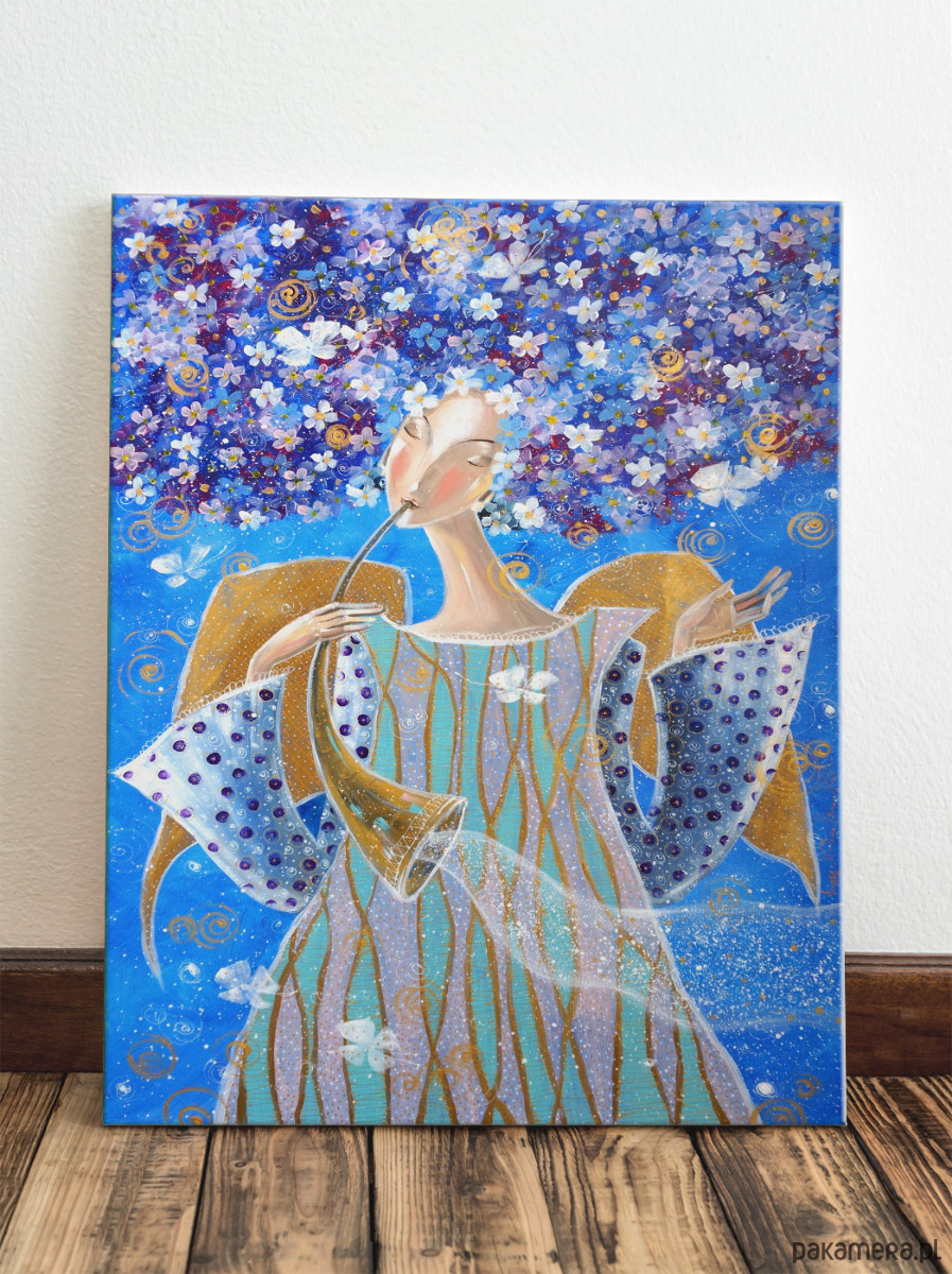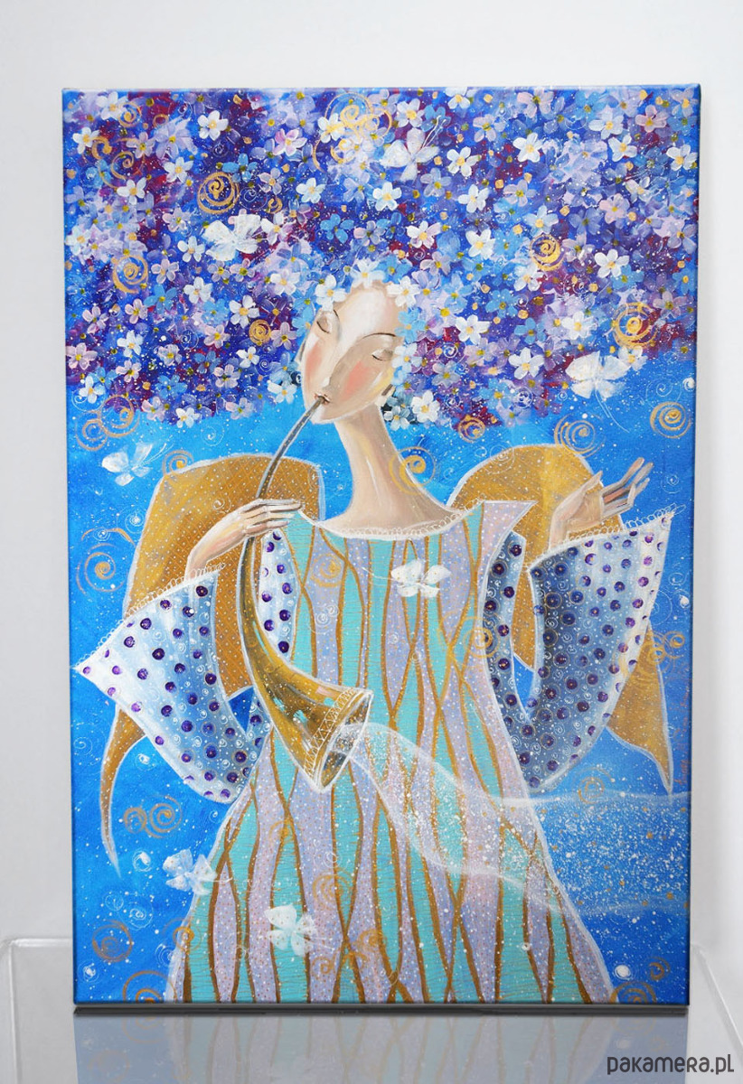 Reprodukcja pracy własnej pod tytułem „Dźwięki lata". Wysokiej jakości wydruk na płótnie Canvas naciągnięty na krosno malarskie, zabezpieczony lakierem oraz sygnowany na odwrocie. Obraz sprzedawany jest bez ramy.