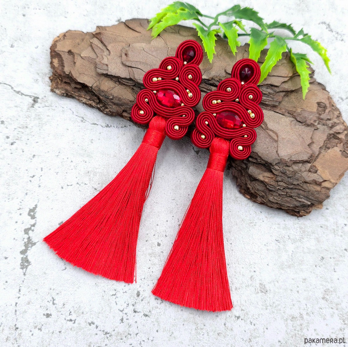 Eleganckie, długie kolczyki sutasz z mięciutkimi, wiskozowymi chwostami.