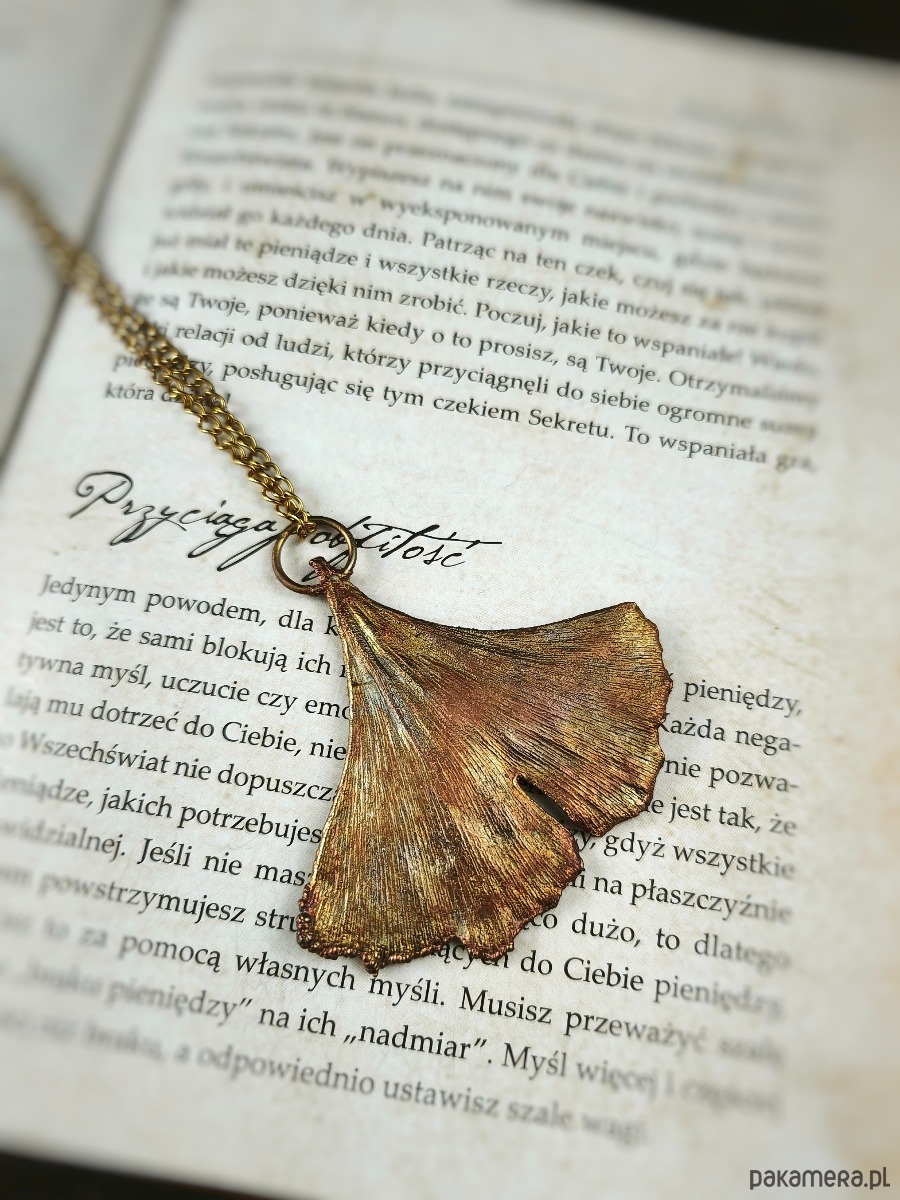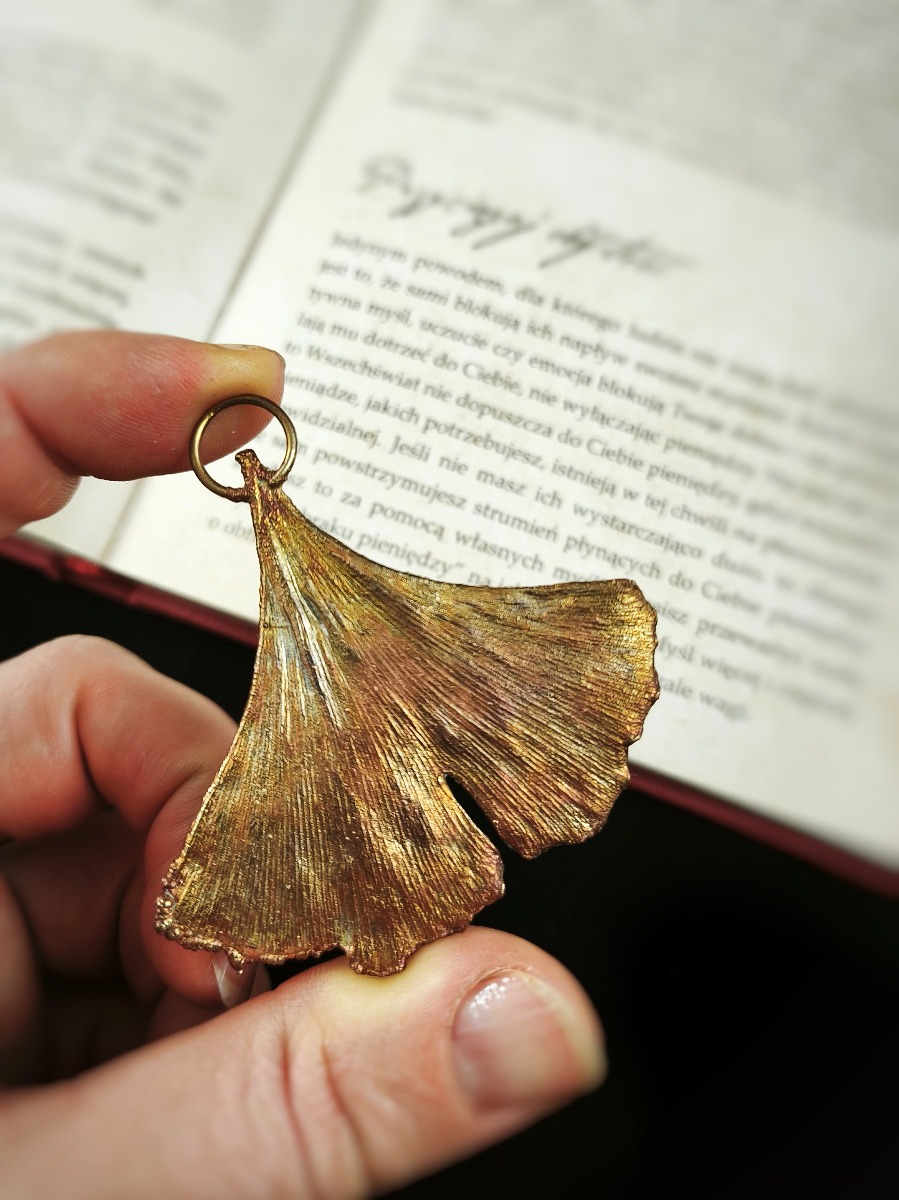 Ginkgo biloba. Liść, który wygląda, jakby pamiętał jeszcze czasy dinozaurów… a teraz może ozdobić Twoją szyję. Ten miedziany wisior powstał z prawdziwego liścia miłorzębu, który w procesie galwanizacji zyskał trwałą, szlachetną formę – jak zaklęty w metalu fragment jesieni.