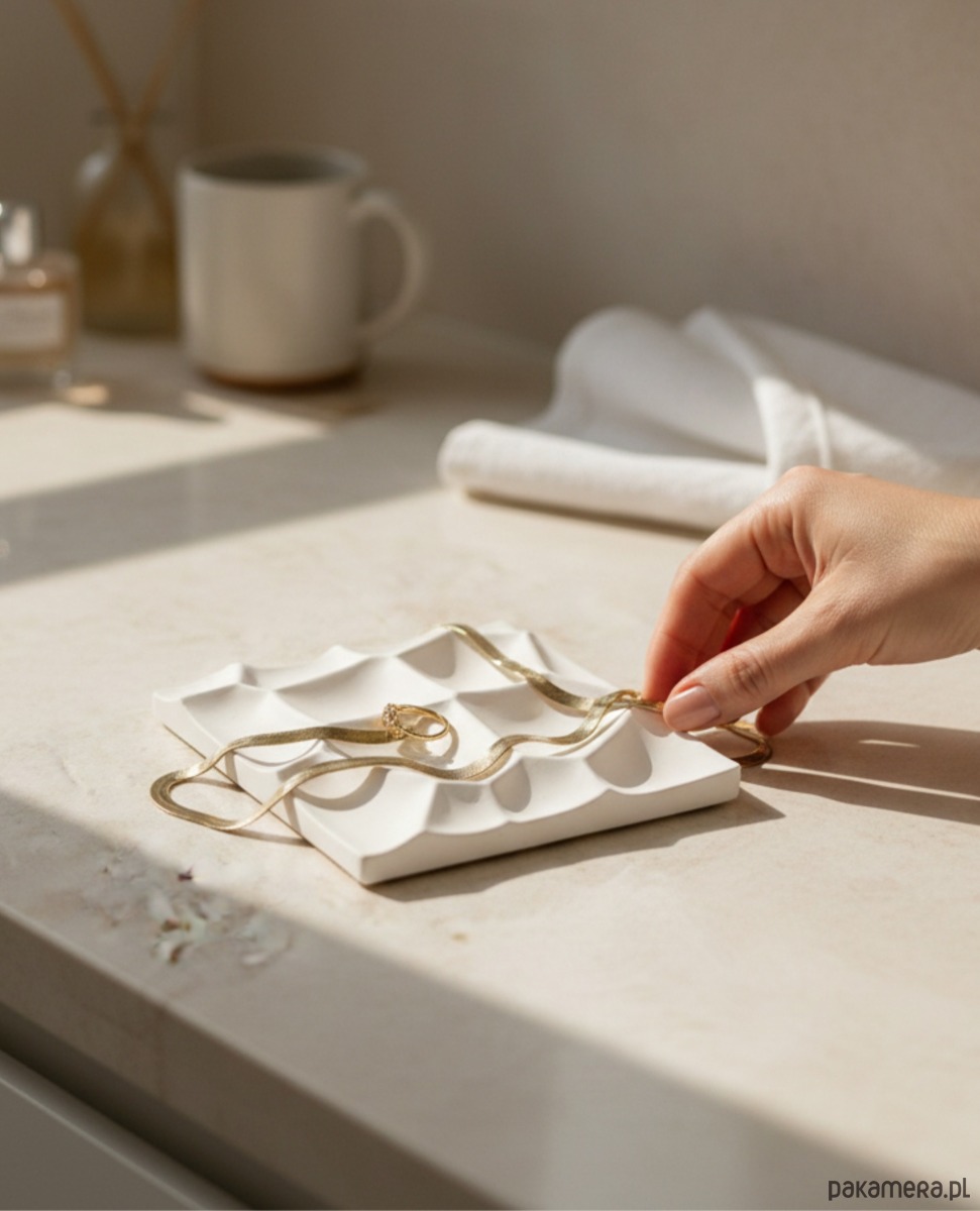 Gipsowa podstawka to idealne rozwiązanie jako tacka na biżuterię, zegarek, klucze lub do wielu innych zastosowań. To doskonały sposób na dodanie przytulności do Twojego mieszkania.