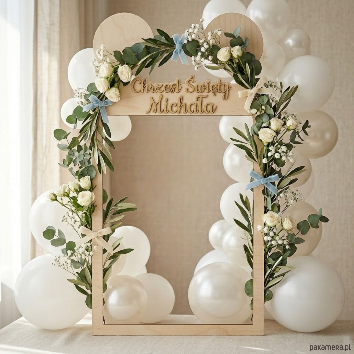 Girlanda Łuk na Baby Shower Chrzest Urodziny Ścianka Stelaż Tło do Zdjęć