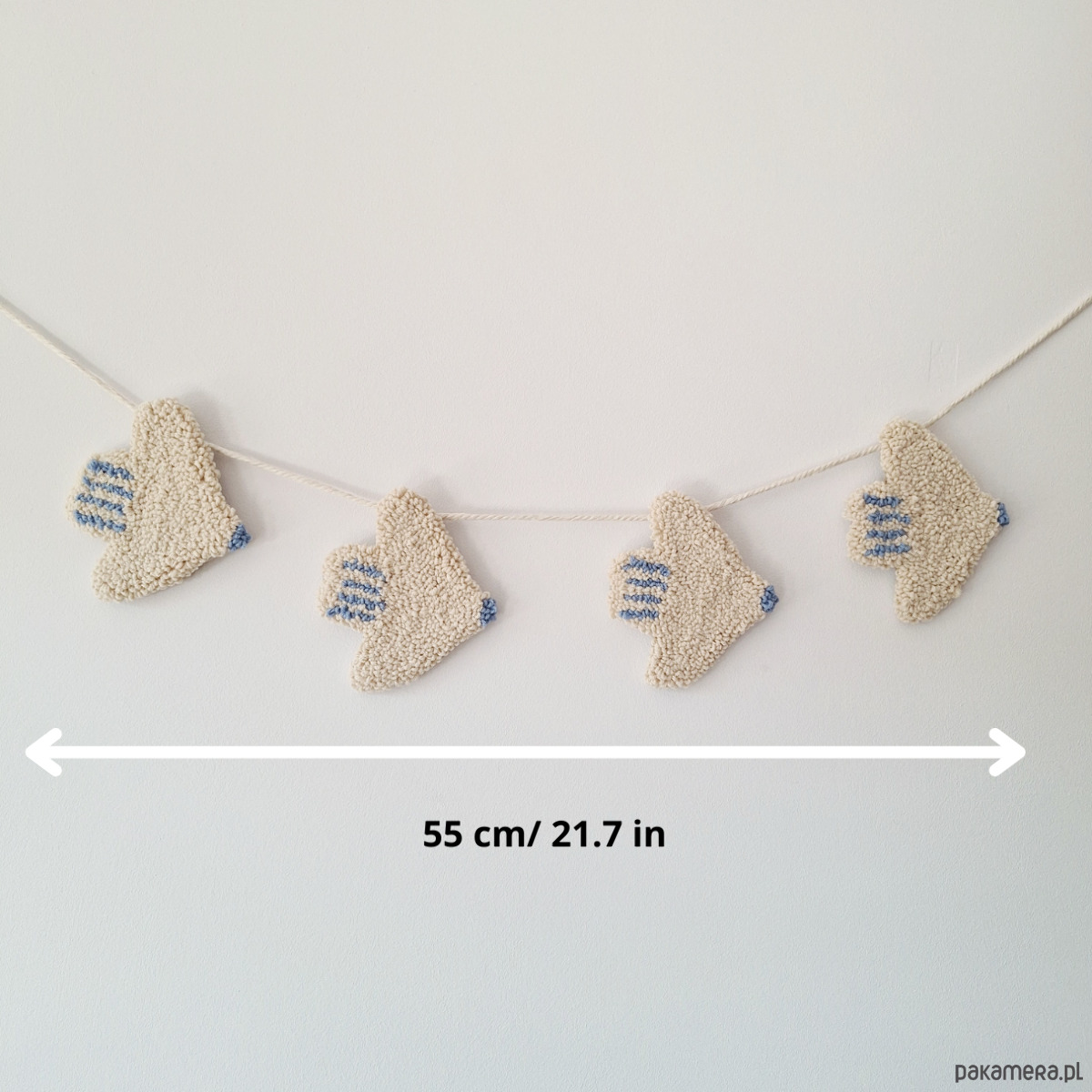 Girlanda z ptaszkami do pokoju dziecka to subtelna dekoracja ścienna, która wprowadza spokój i miękkość do wnętrza. Idealna do pokoju niemowlaka lub jako wyjątkowy prezent na narodziny.