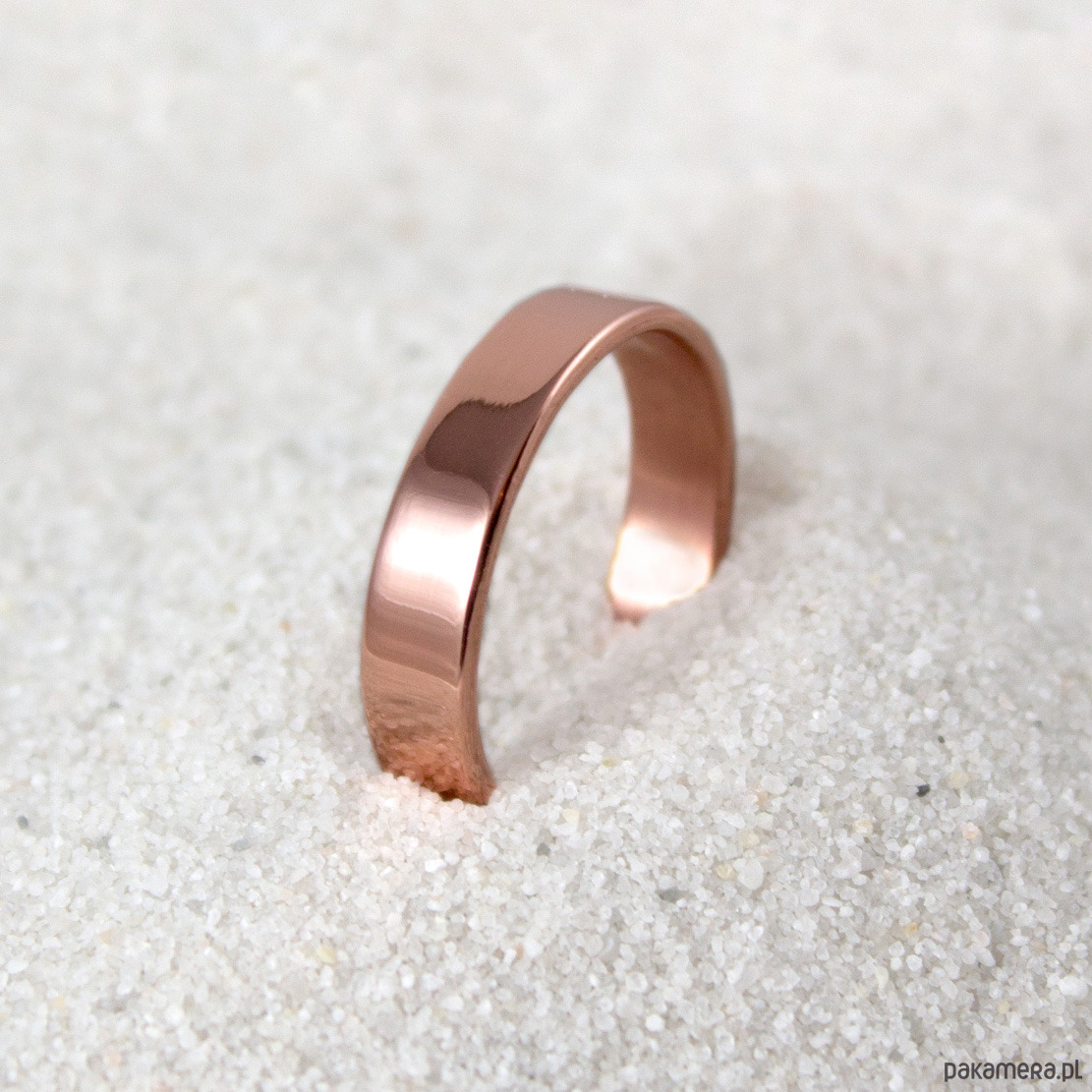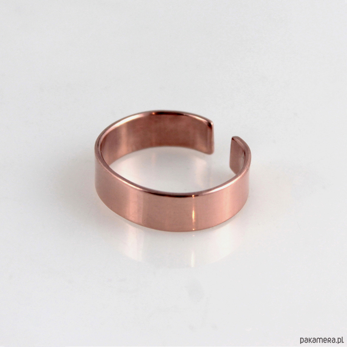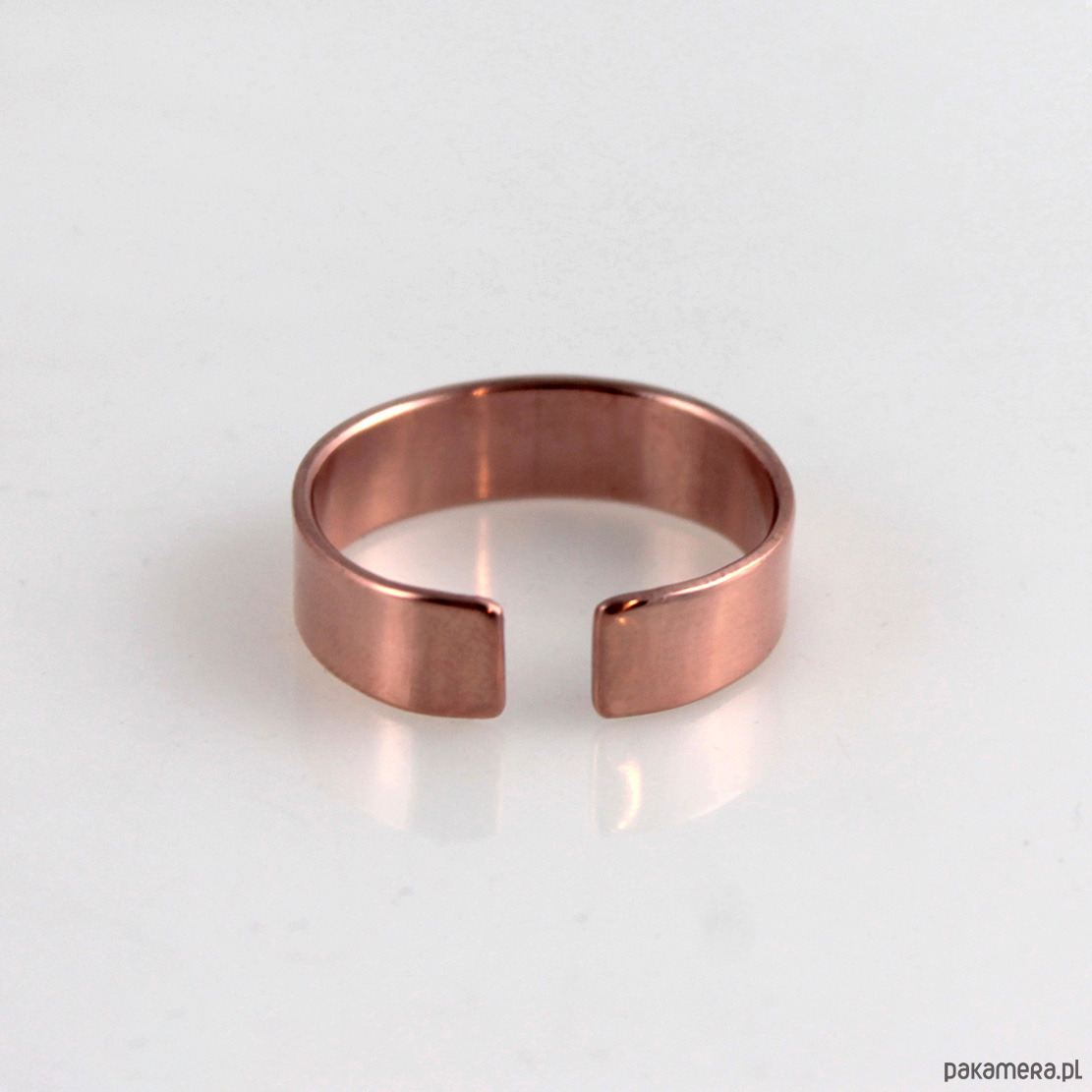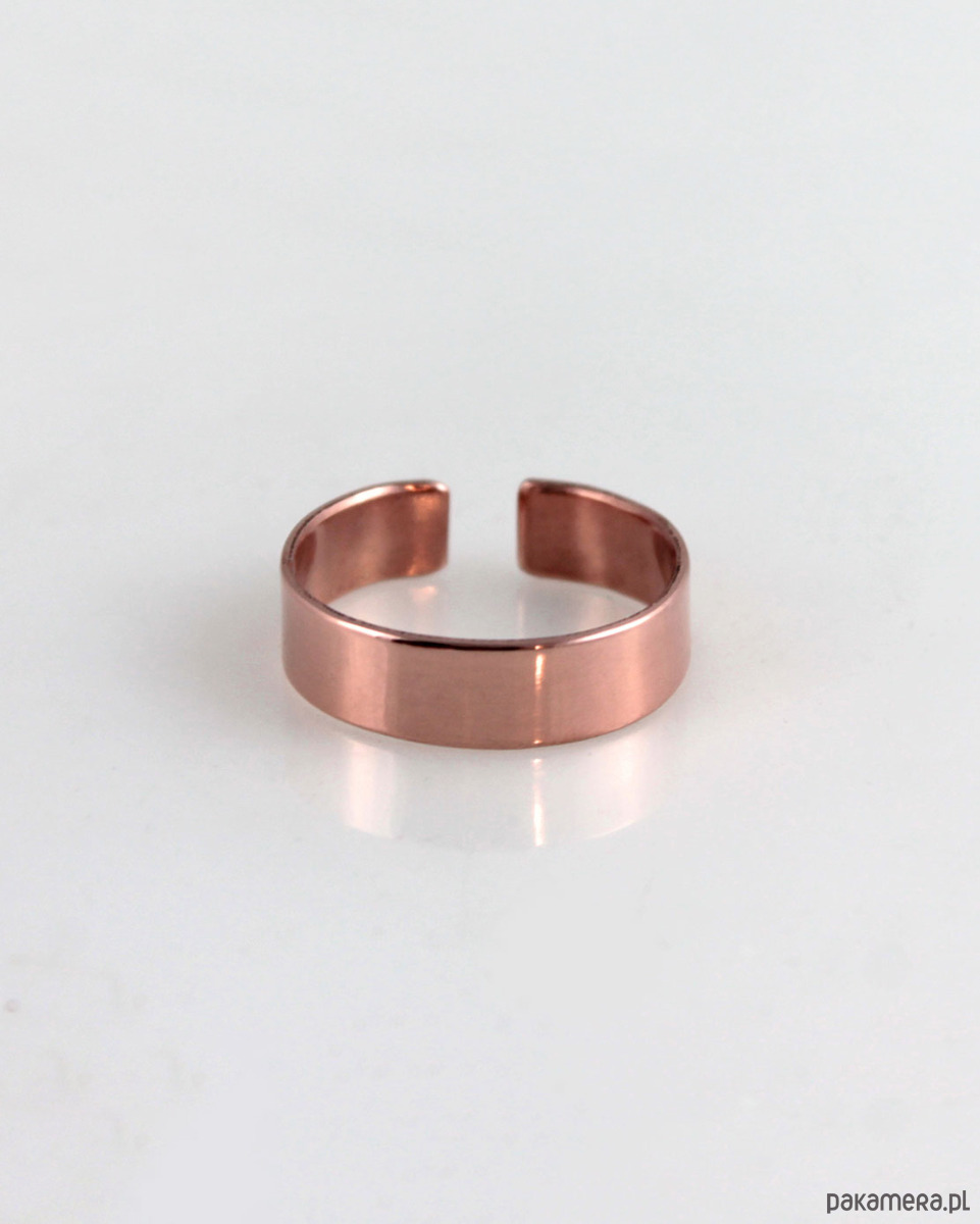 Pierścionek został wykonany z miedzi, jego szerokość to ok 0,5 cm.