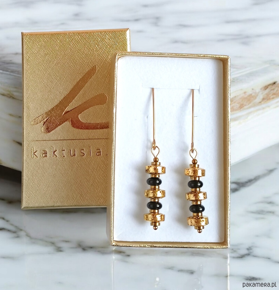 GLAM! złota lawa, onyks, hematyt : kolczyki długie