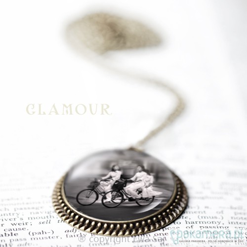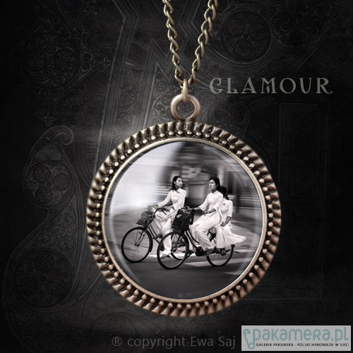 Medalion - romantyczny, oryginalny, zaczarowany Piękne dziewczyny z miasteczka Hiue w Wietnamie to miniaturka mojej fotografii, ukryta pod szklaną kopułą przeźroczystego szkiełka. Umieszczona na stylowym medalionie w kolorze antycznego złota. Srednica medalionu wynosi 3,8 cm, natomiast wielkość graficznej miniatury 3 cm. Medalion zawieszonyjest na długim na 70 cm. łańcuszku. Na życzenie mogę skrócić. Estetycznie zapakowany - idealny na prezent.
