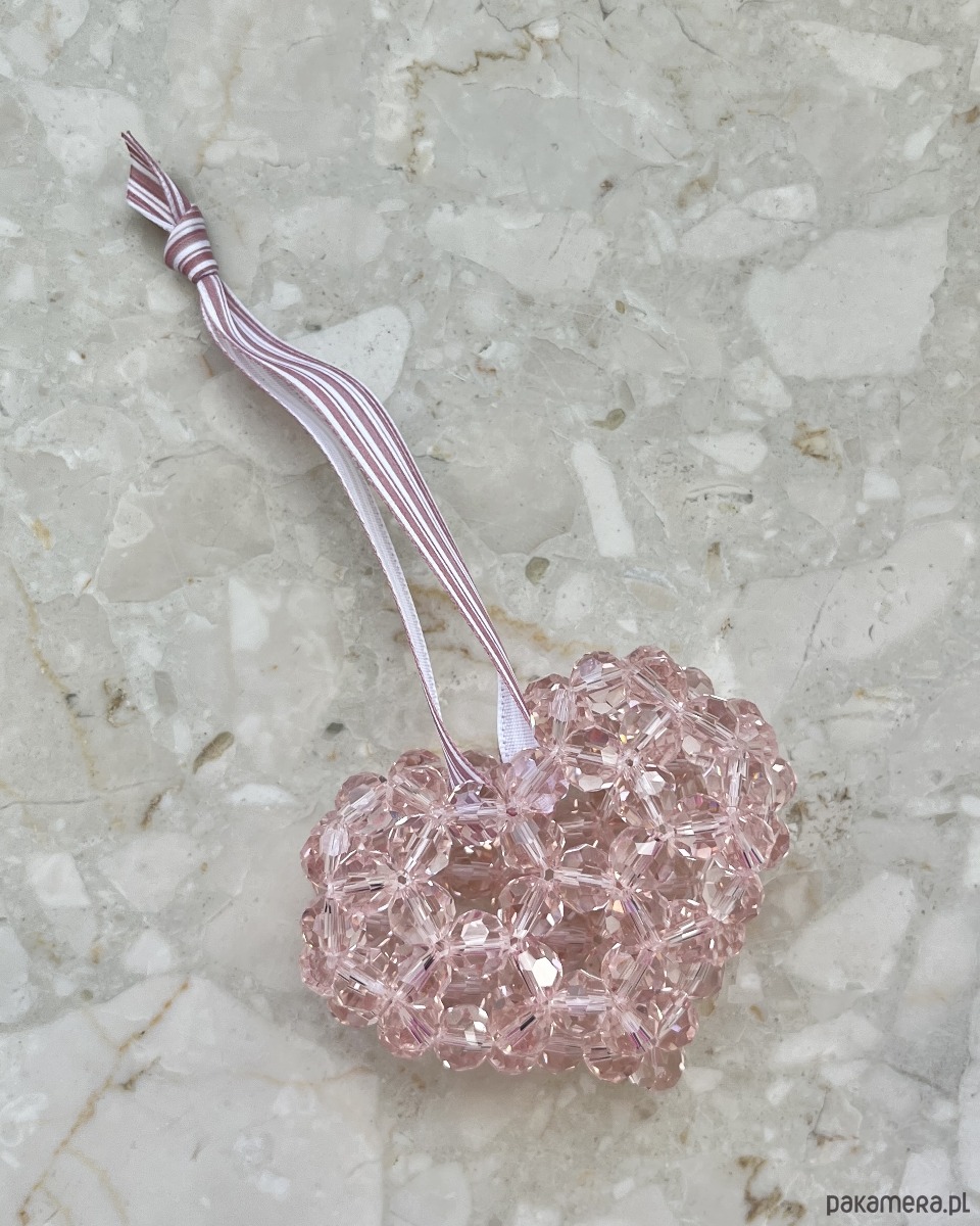 Ta elegancka zawieszka GLITTER HEART wykonana jest z różowych szklanych kryształków, które pięknie odbijają światło, nadając jej subtelny, kryształowy blask. Może być używana jako ozdoba całoroczna lub bombka świąteczna, idealna do ozdobienia choinki lub innych dekoracyjnych aranżacji. Zawieszona na eleganckiej tasiemce, dodaje uroku i delikatności każdemu wnętrzu.