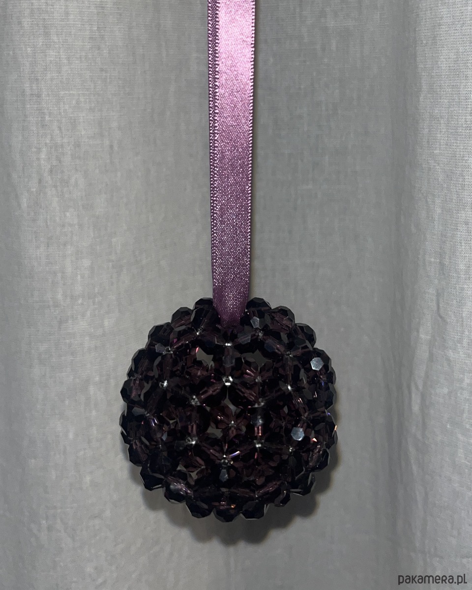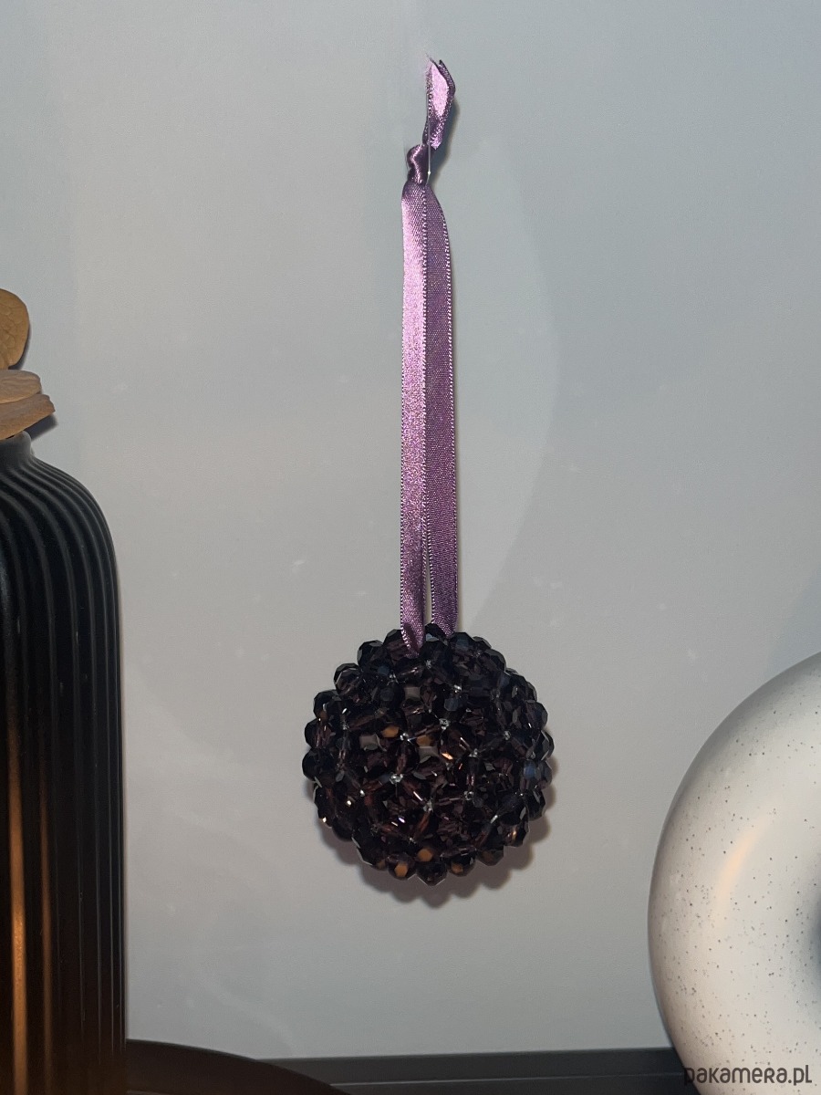 Ta elegancka zawieszka GLITTER PUFF wykonana jest z ciemnych fioletowych szklanych kryształków, które pięknie odbijają światło, nadając jej subtelny, kryształowy blask. Może być używana jako ozdoba całoroczna lub bombka świąteczna, idealna do ozdobienia choinki lub innych dekoracyjnych aranżacji. Zawieszona na eleganckiej tasiemce, dodaje uroku i delikatności każdemu wnętrzu.