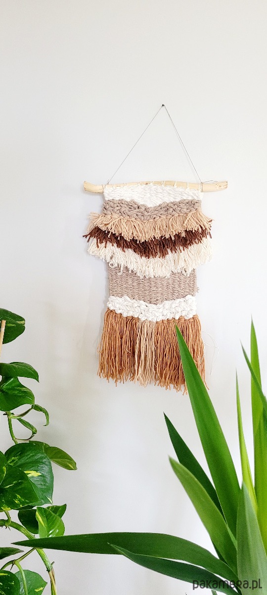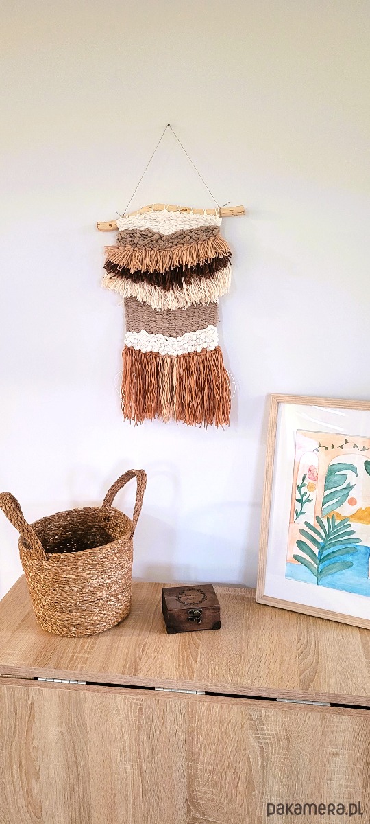 Ręcznie tkany gobelin w odcieniach Ziemi - idealny do wnętrz w odcieniach beżu, bieli, brązów.