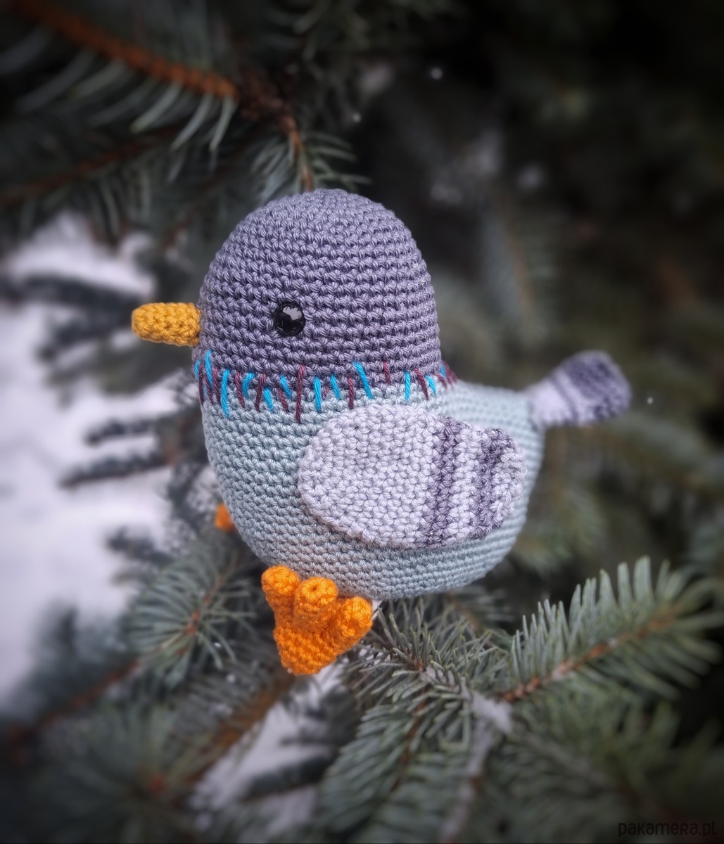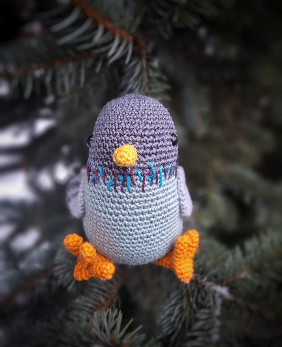 Gołąb ptak wykonany na szydełku
