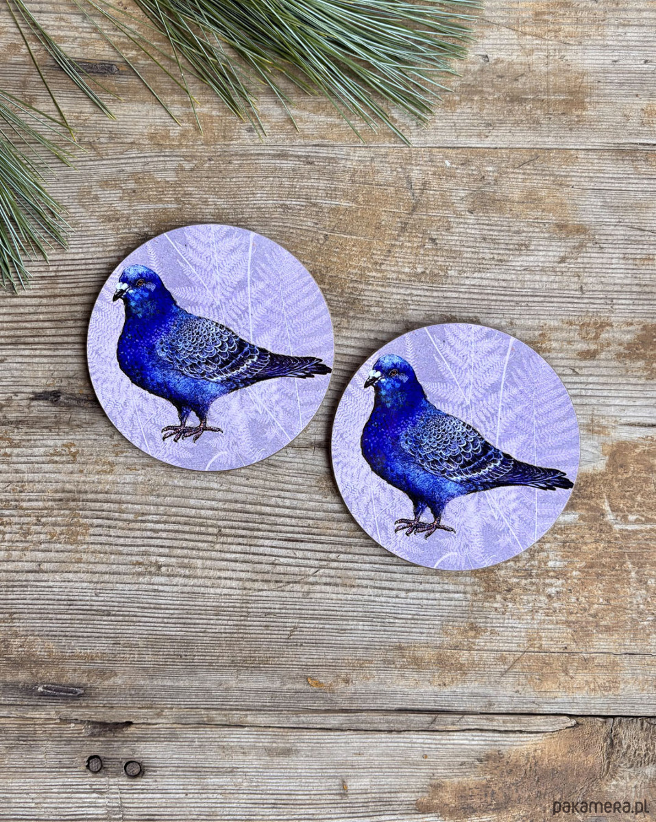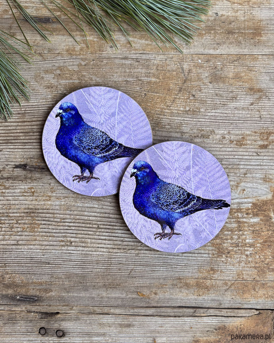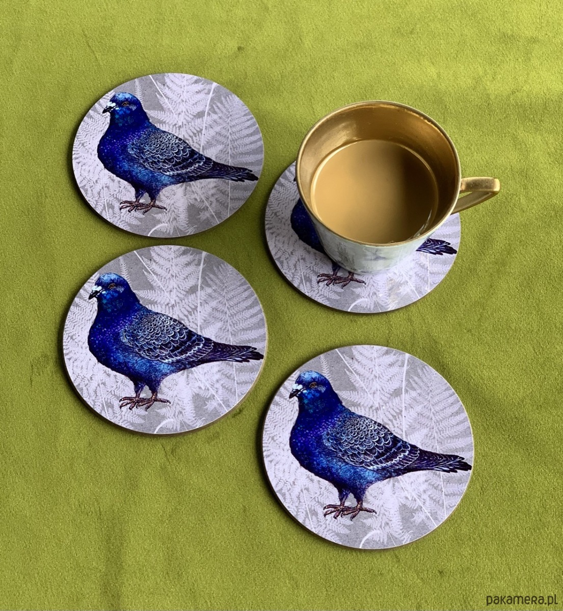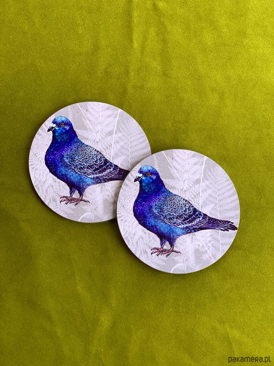 Komplet dwóch błyszczących podkładek pod kubek z autorską ilustracją.