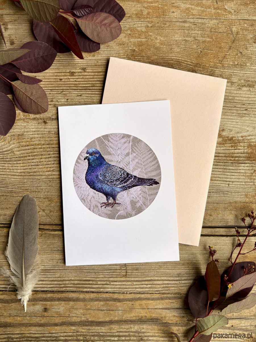 Gołąbek- Kartka- Grafika- Ilustracja- Ptaki