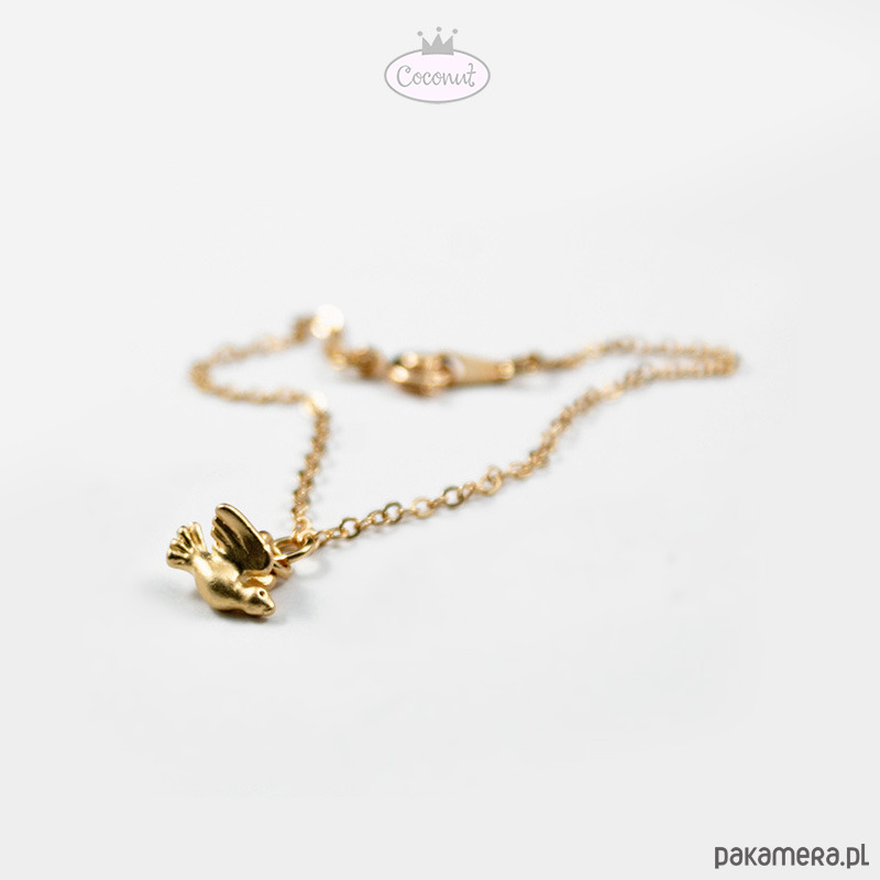 łańcuszek ok. 45 cm, element ozdobny - ptaszek, ok. 10 mm satynowy, w kolorze złota.