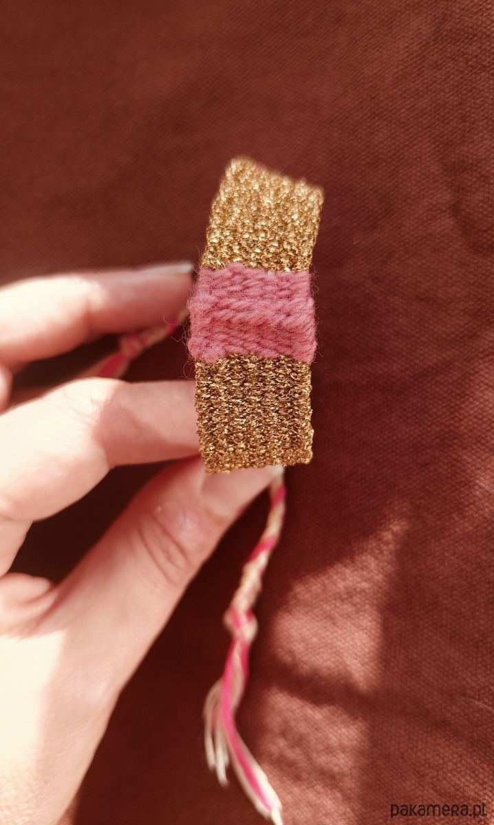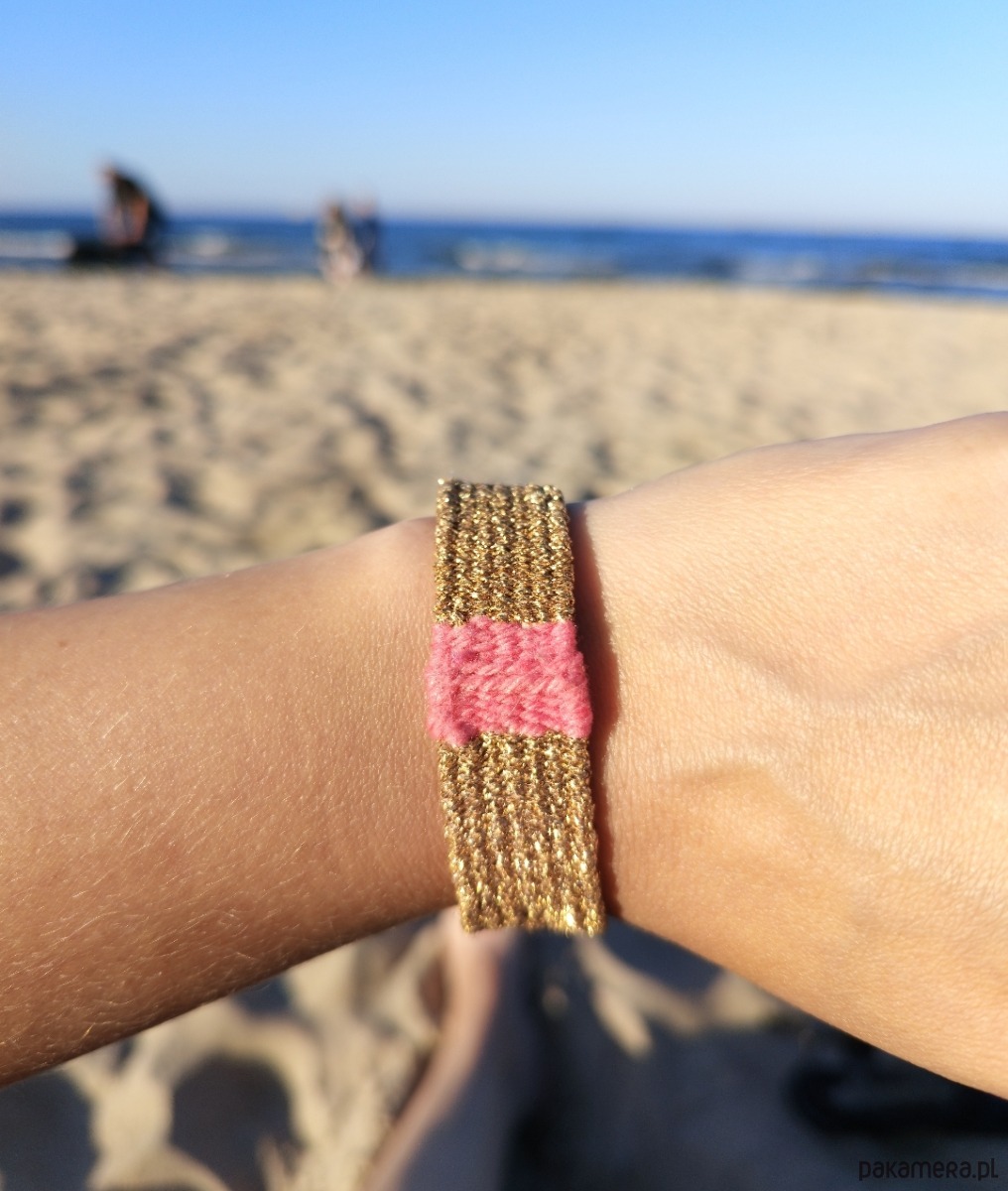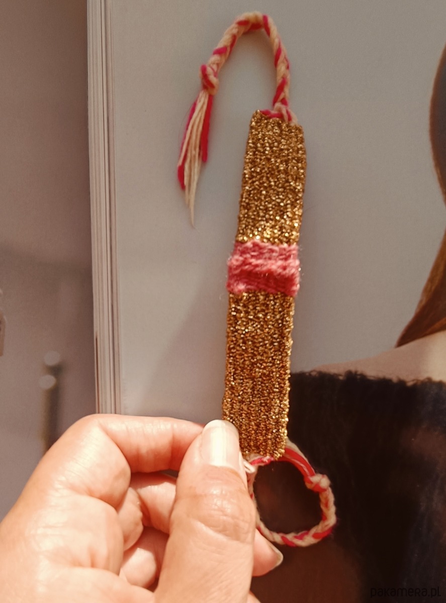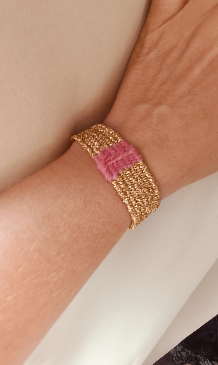 Tkana bransoletka z lureksu i bawelny Do zawiązania na ręce.Pakowana w ładne pudełeczko z logo.