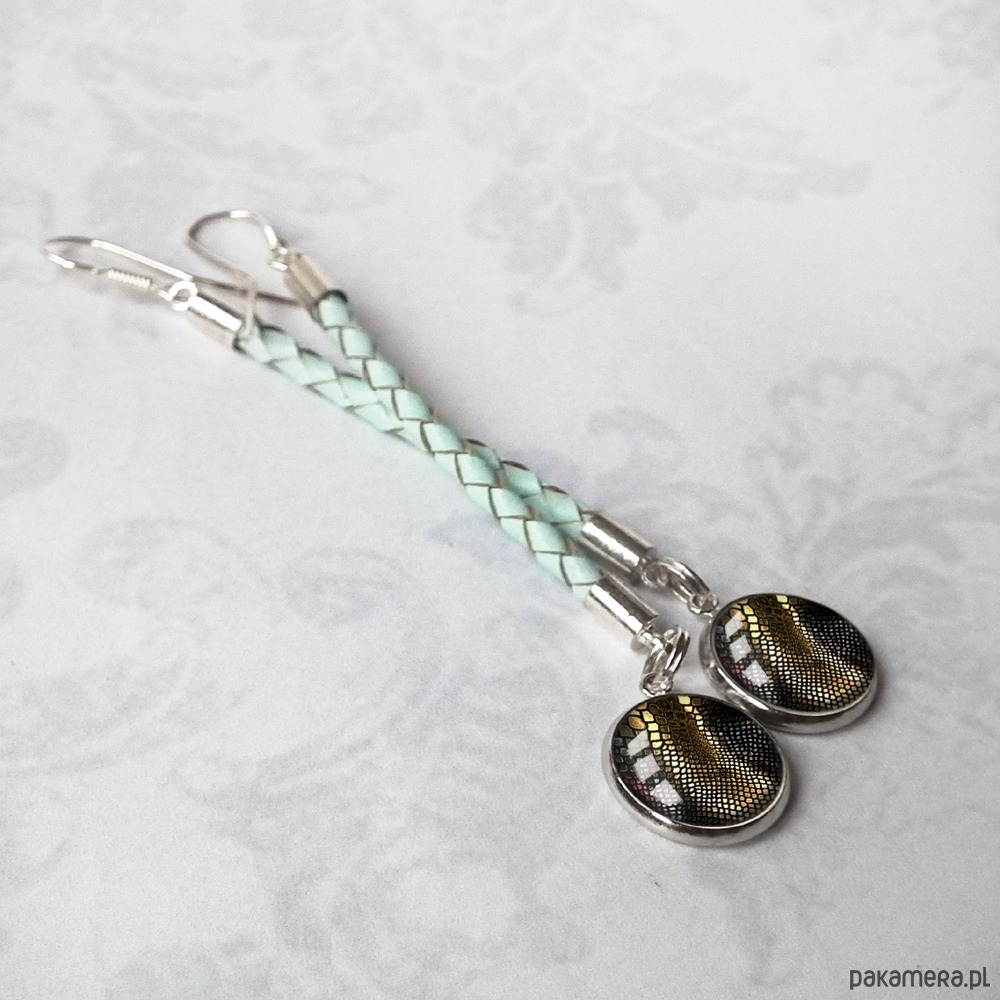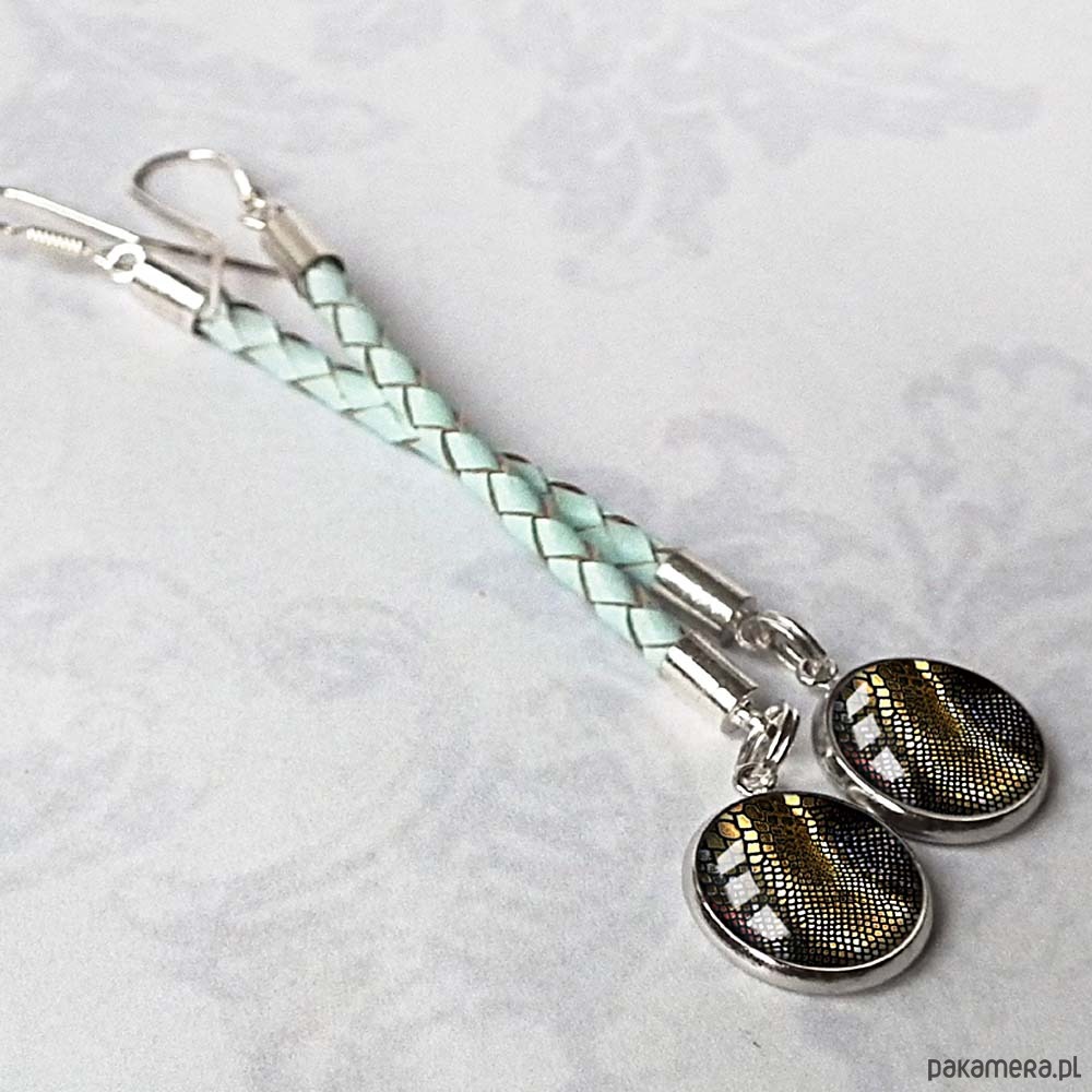 Oryginalne, artystyczne kolczyki wiszące ze szkłem artystycznym, w oprawie ze stali chirurgicznej. Grafika jest najwyższej jakości. Bigle wykonane ze srebra próby 0,925. Szkła z grafiką są niepowtarzalne, wykonane ręcznie według mojego projektu, z dbałością o każdy detal, dlatego biżuteria ta jest jedyna w swoim rodzaju i niespotykana.