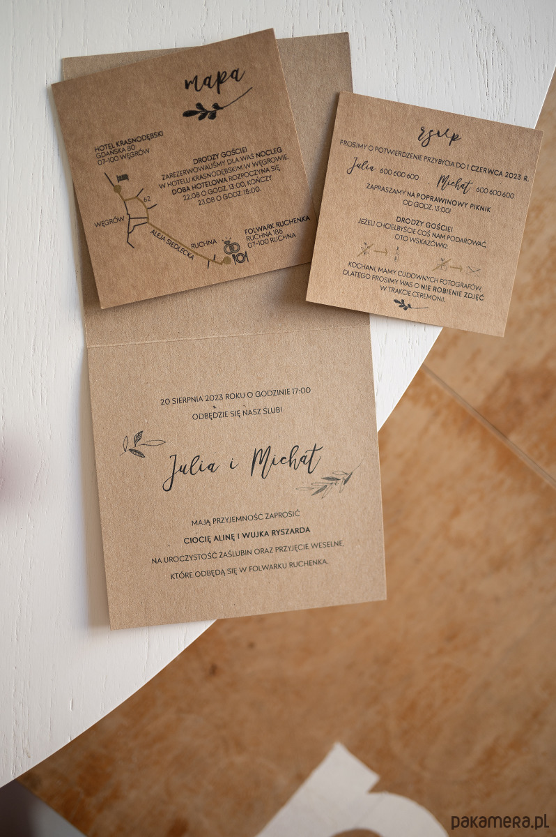Cena dotyczy jednej sztuki zaproszenia. Po przesłaniu danych do projektu i listy gości przesyłamy link do zamówienia wybranej ilości zaproszeń
