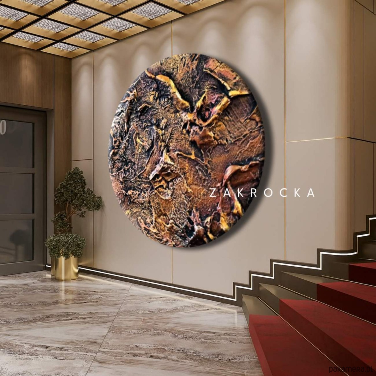 GOLDONDO - obraz okrągły koło pozłacana struktura płaskorzeźba