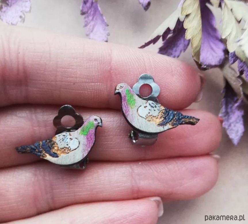 Lekkie klipsy wykonane według autorskiego rysunku. Klipsy wycięte z cieniuteńkiej sklejki, ręcznie malowane i zabezpieczone lakierem, wielkość ok. 1.5cm.