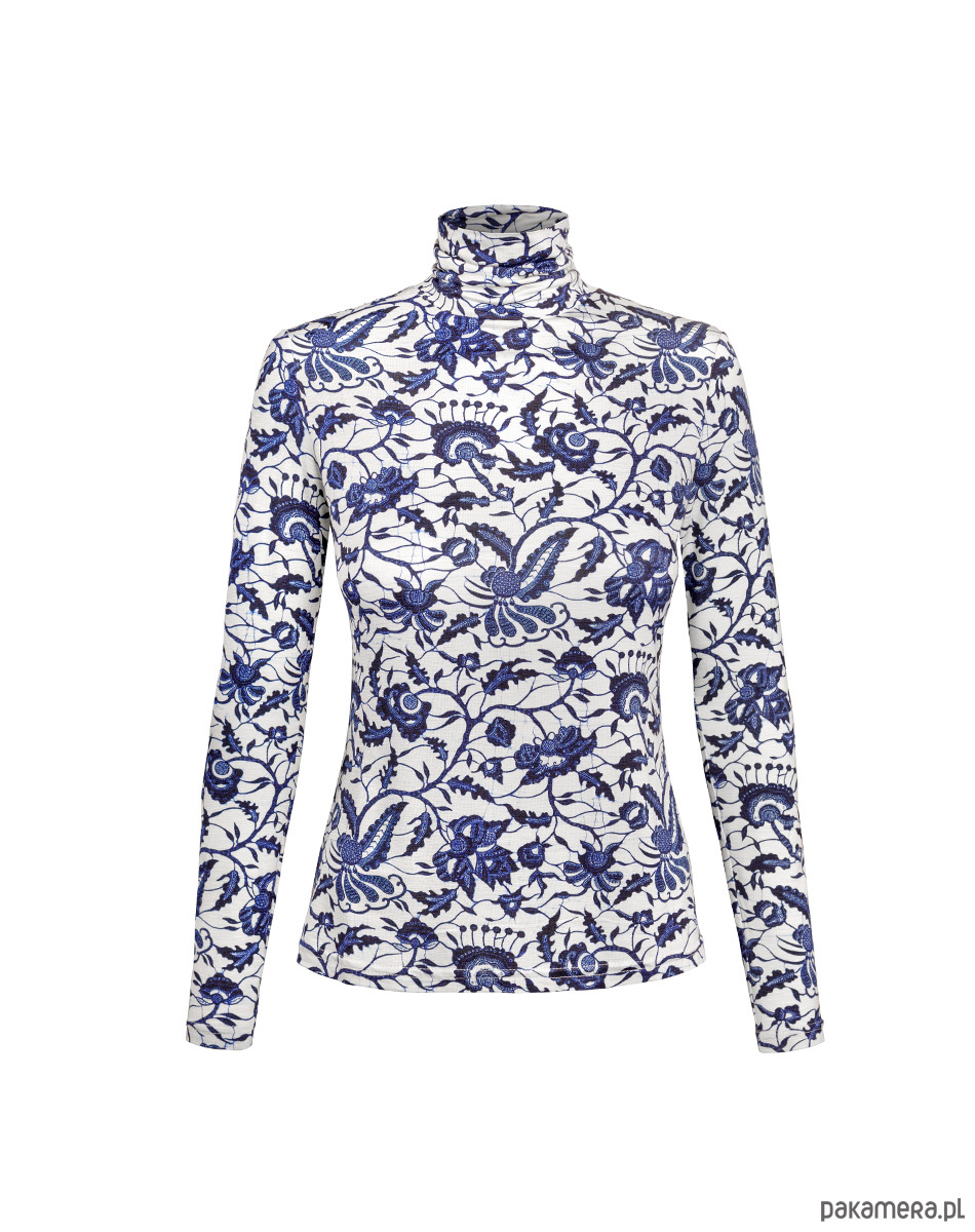 Longsleeve z golfem z linii BASIC. Uszyty z wysokogatunkowej dzianiny wiskozowej z printem roślinnym w czerwone kwiaty. Top dopasowuje się do Twojej sylwetki, podkreślając figurę, a jednocześnie zapewniając swobodę ruchów. Golfy różnią się ułożeniem wzoru.