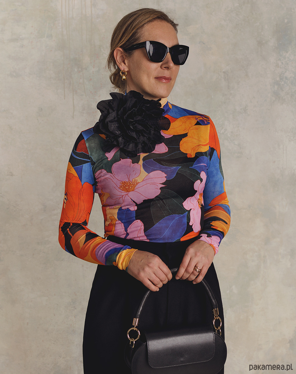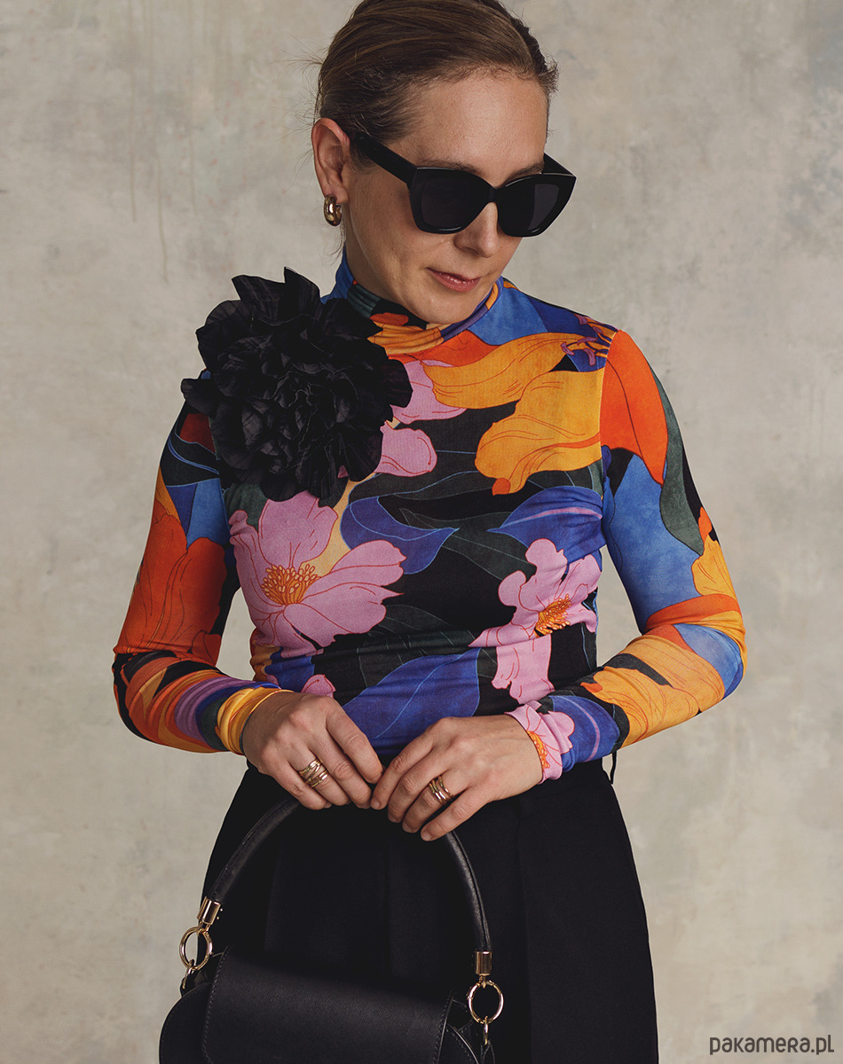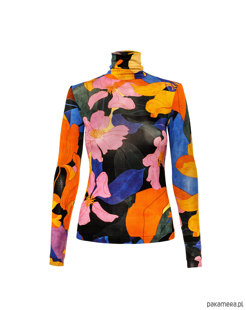 Longsleeve z golfem z linii BASIC. Uszyty z wysokogatunkowej dzianiny wiskozowej z printem roślinnym w kwiaty. Top dopasowuje się do Twojej sylwetki, podkreślając figurę, a jednocześnie zapewniając swobodę ruchów. Golfy różnią się ułożeniem wzoru.
