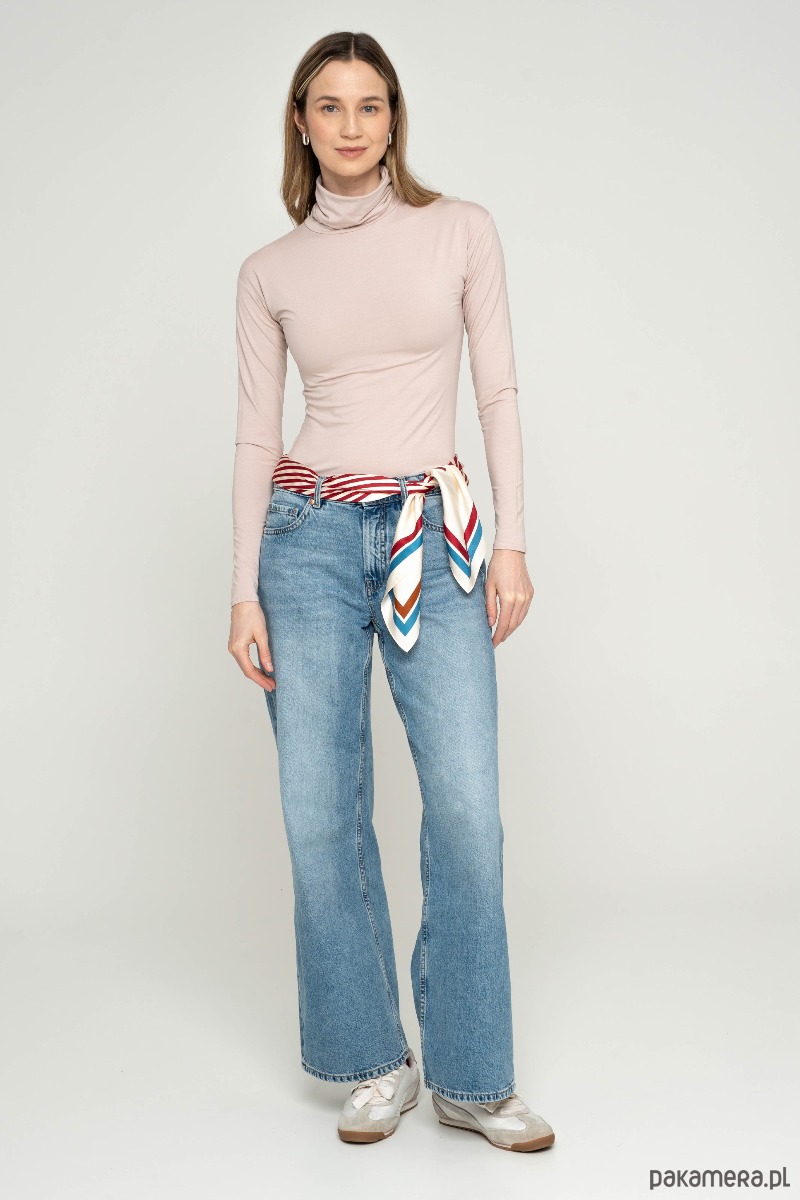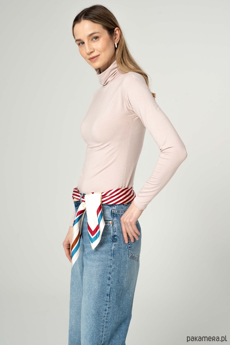 Klasyczny dopasowany golf. Długi i opięty rękaw z obniżonym ramieniem. Idealny pod marynarkę. Uszyty w przyjemnej w dotyki dzianiny modalowej.