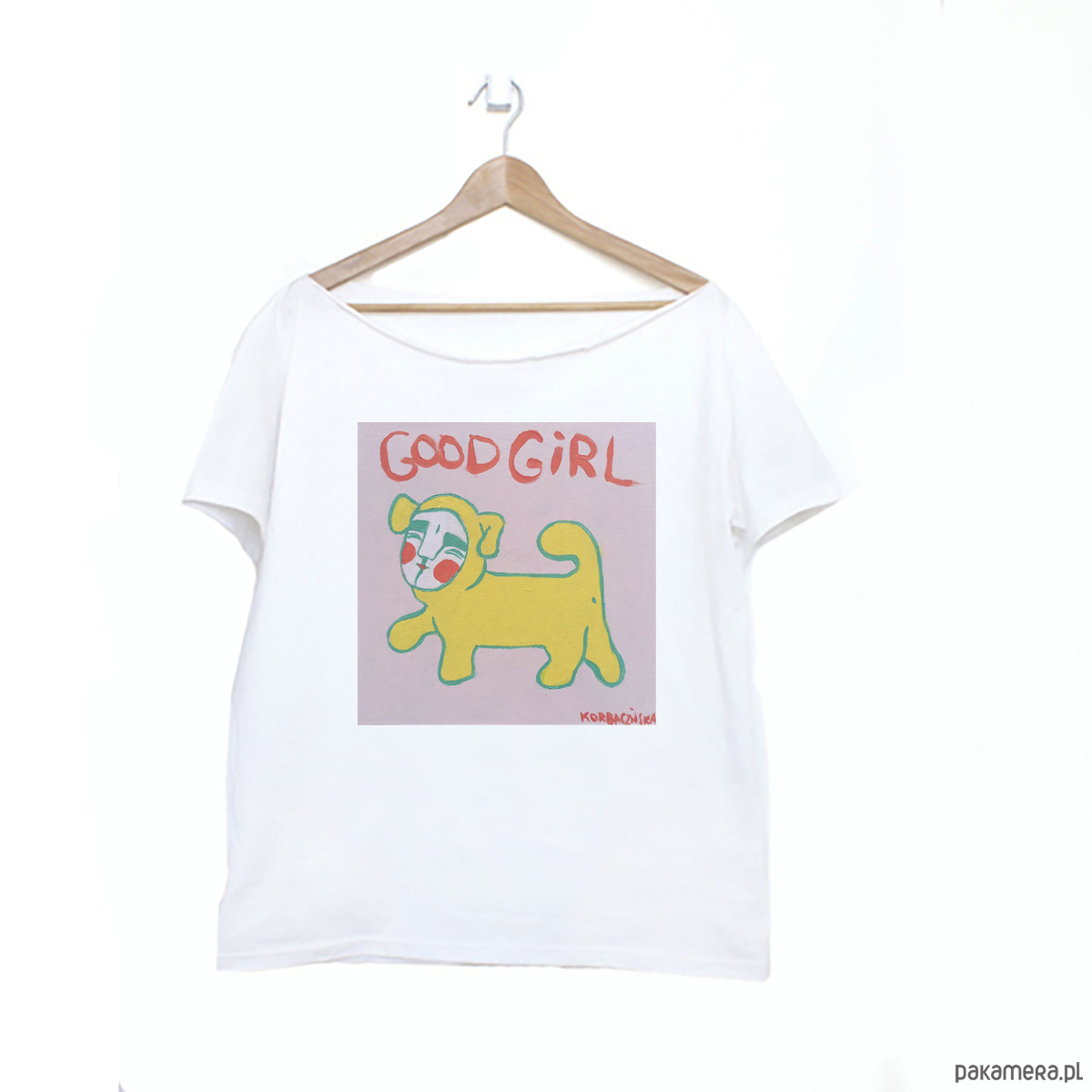 Koszulka z kolekcji Pauliny Korbaczyńskiej to połączenie prostoty i artystycznej ekspresji.