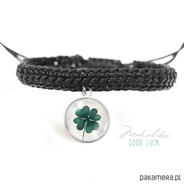 Prosta, wygodna, modna bransoletka wykonana z cienkiego woskowanego sznurka. Szerokość bransoletki 10 mm. Sznureczki pozwalają dopasować bransoletkę do nadgarstka 14 -16 cm. Cherms ze stali nierdzewnej z autorską grafiką ma średnicę 16 mm. Copyright Ewa Saj. All Rights Reserved.