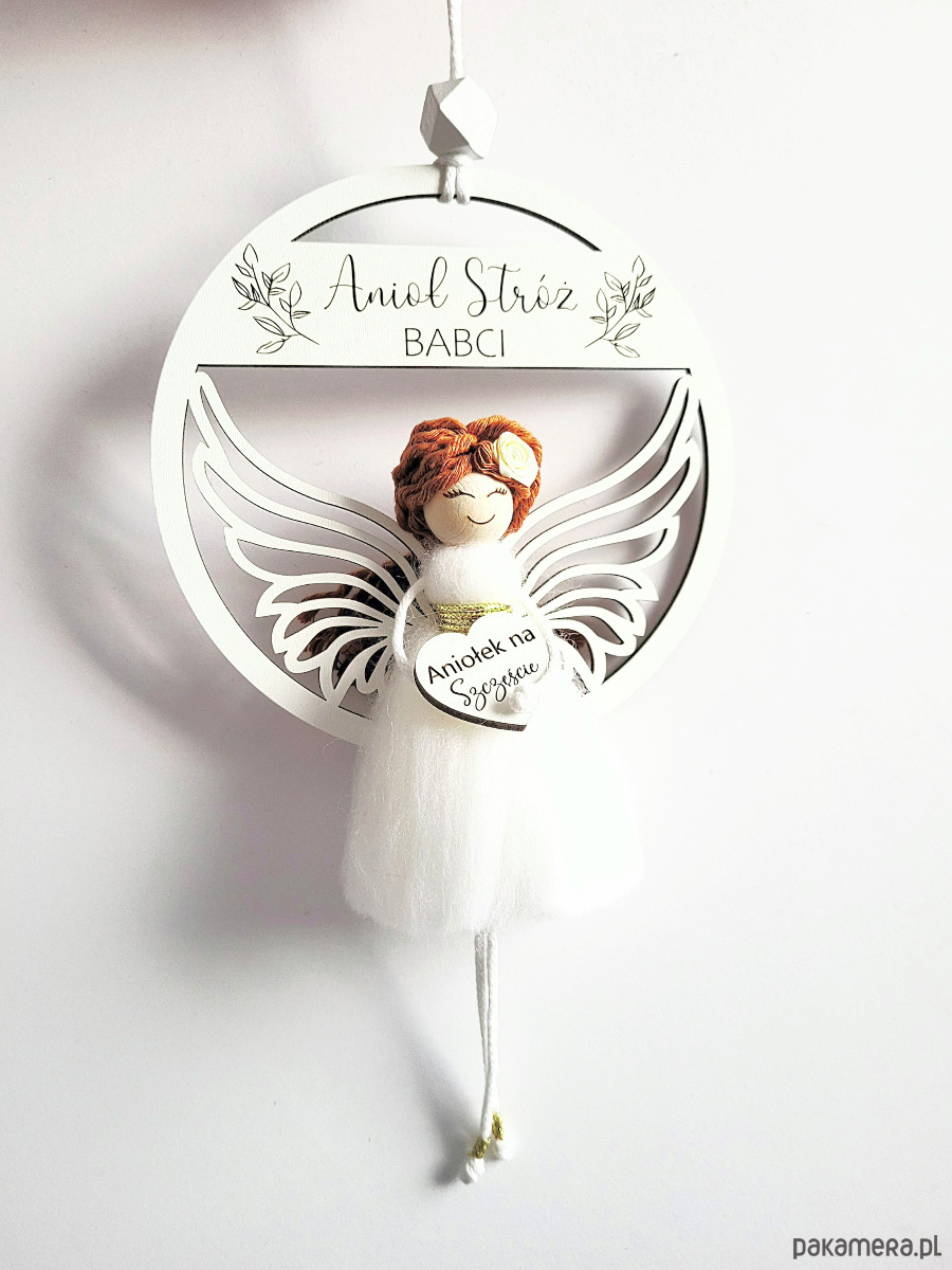 Gotowy Upominek Prezent Na Dzień Babci- ANIOŁEK biała zawieszka