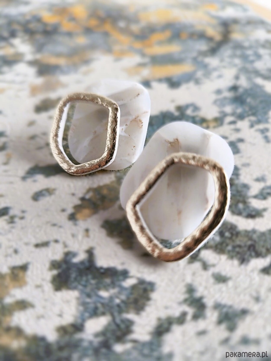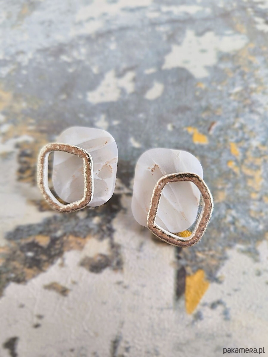Kolczyki w stonowanej delikatnej jasne kolorystyce ze złocistymi akcentami