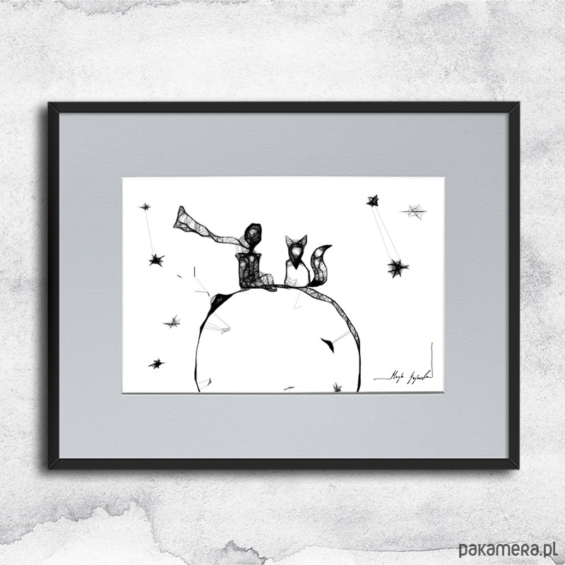 Grafika wykonana techniką mieszaną (giclée+rysunek isografem) na białym, matowym o lekko fakturowanej powierzchni, graficznym papierze Canson 250g. Unikalna kreska wygląda bardzo efektownie, zaś czarno-białe wykończenia wnętrz idealnie wpisują się puste w ściany nowoczesnych, minimalistycznych czy loftowych powierzchni.