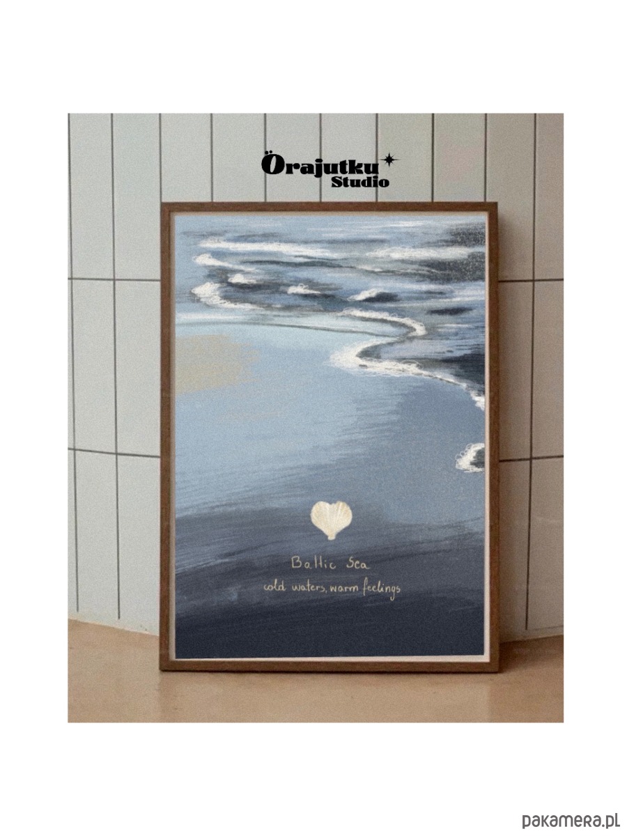 Ta grafika w odcieniach spokojnego błękitu i głębokiej szarości oddaje klimat polskiego morza.