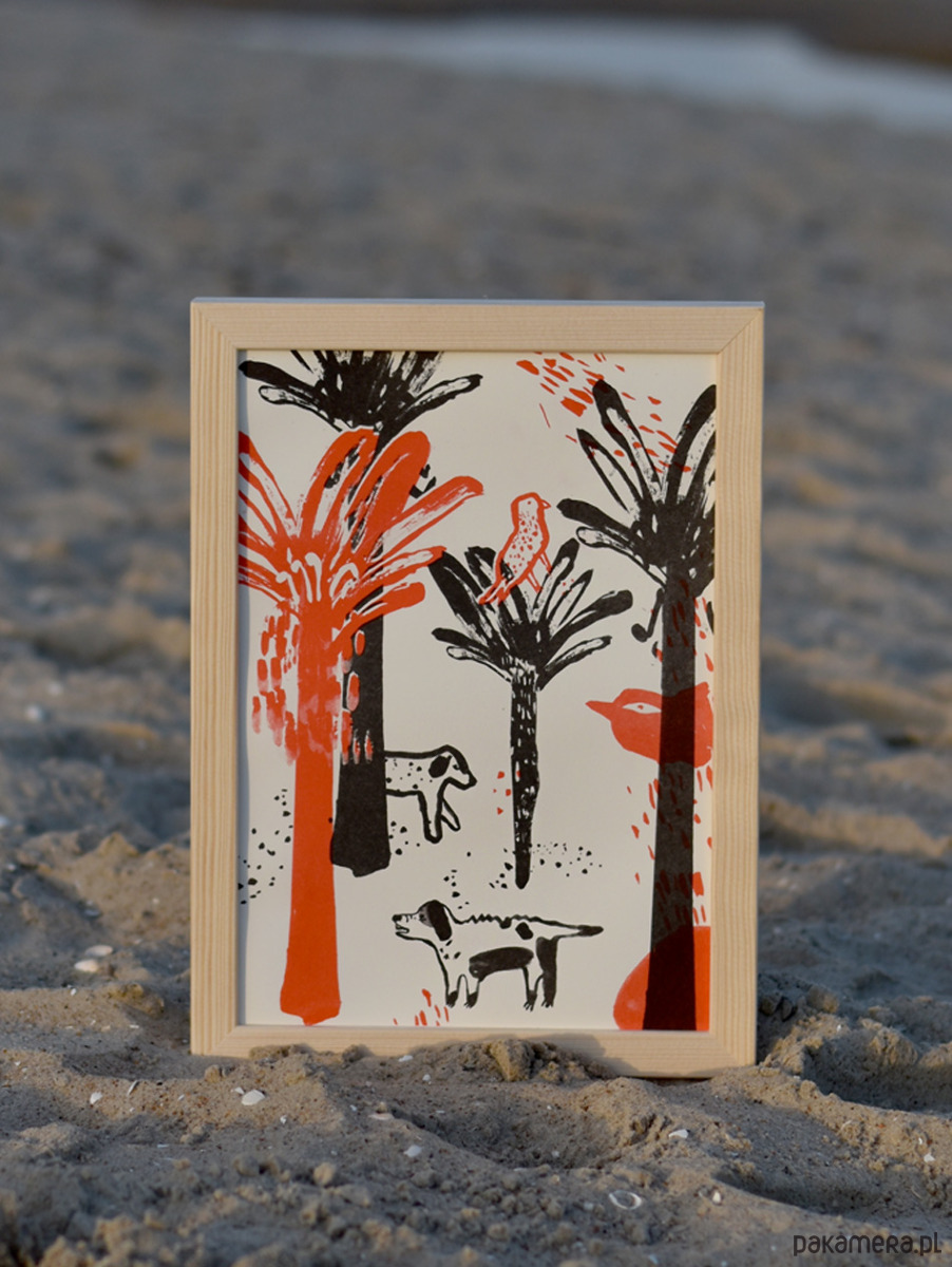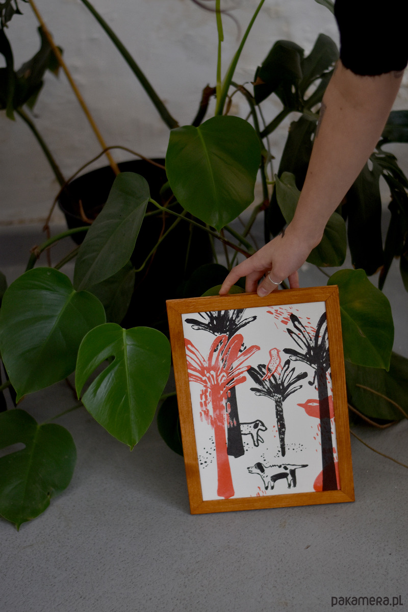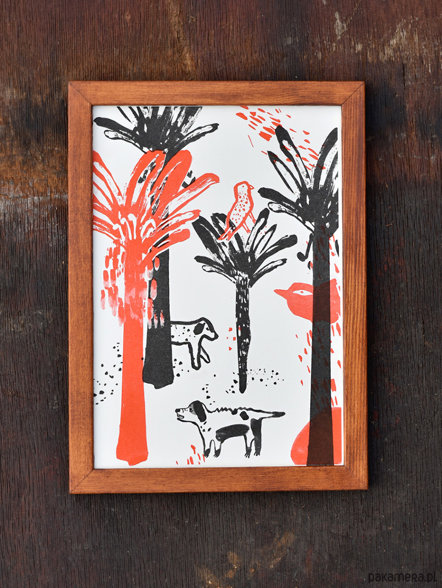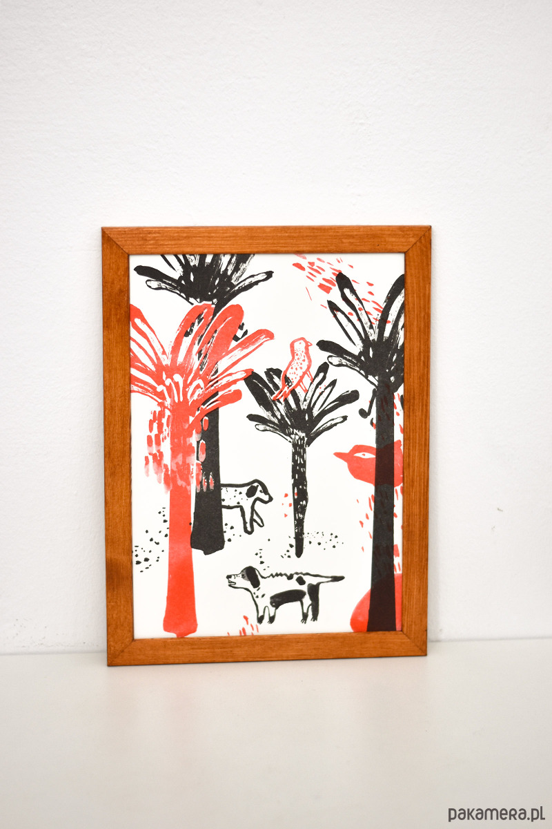 Grafika Dżungla została wydrukowany metodą risografii, która pozwala uzyskać wyjątkowo intensywne, piękne kolory. Technika ta nadaje pracy unikalny efekt i sprawia, że każdy egzemplarz jest trochę inny i niepowtarzalny.