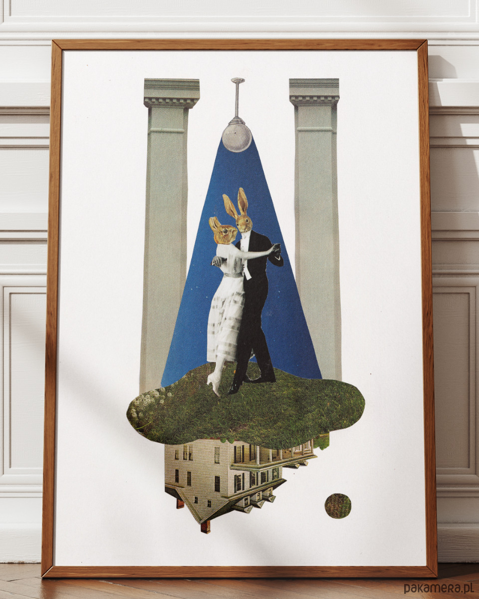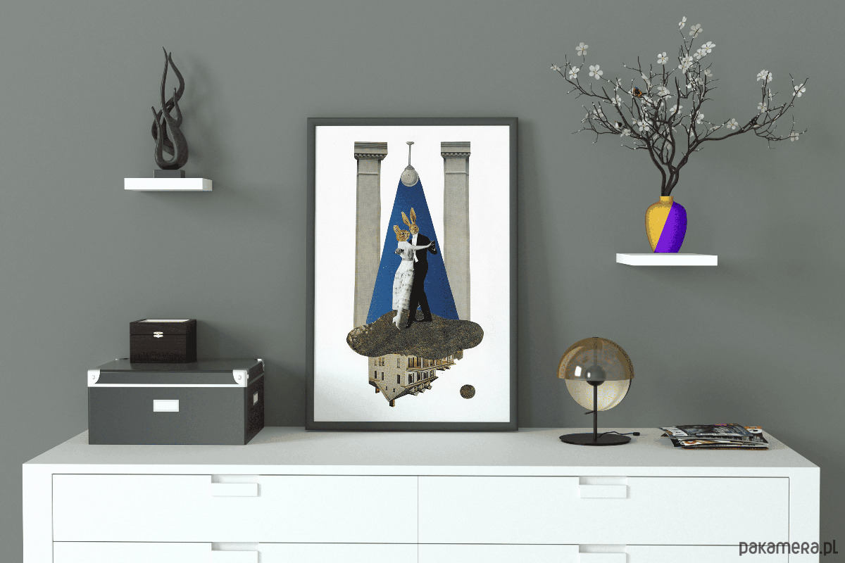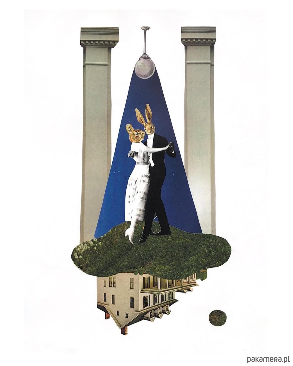 Ten surrealistyczny kolaż to połączenie romantyzmu, tajemnicy i symboliki snu.