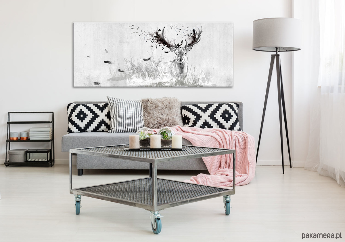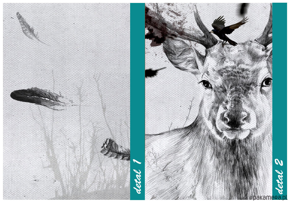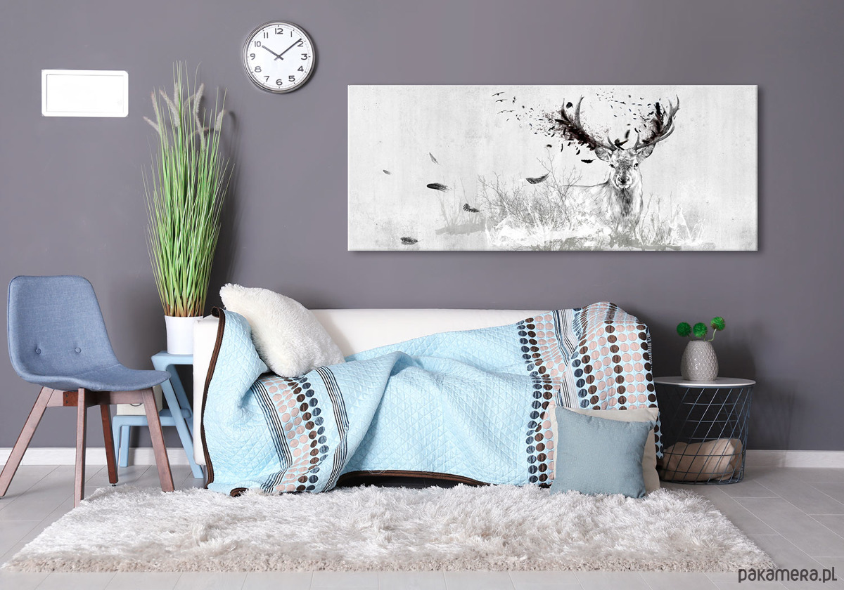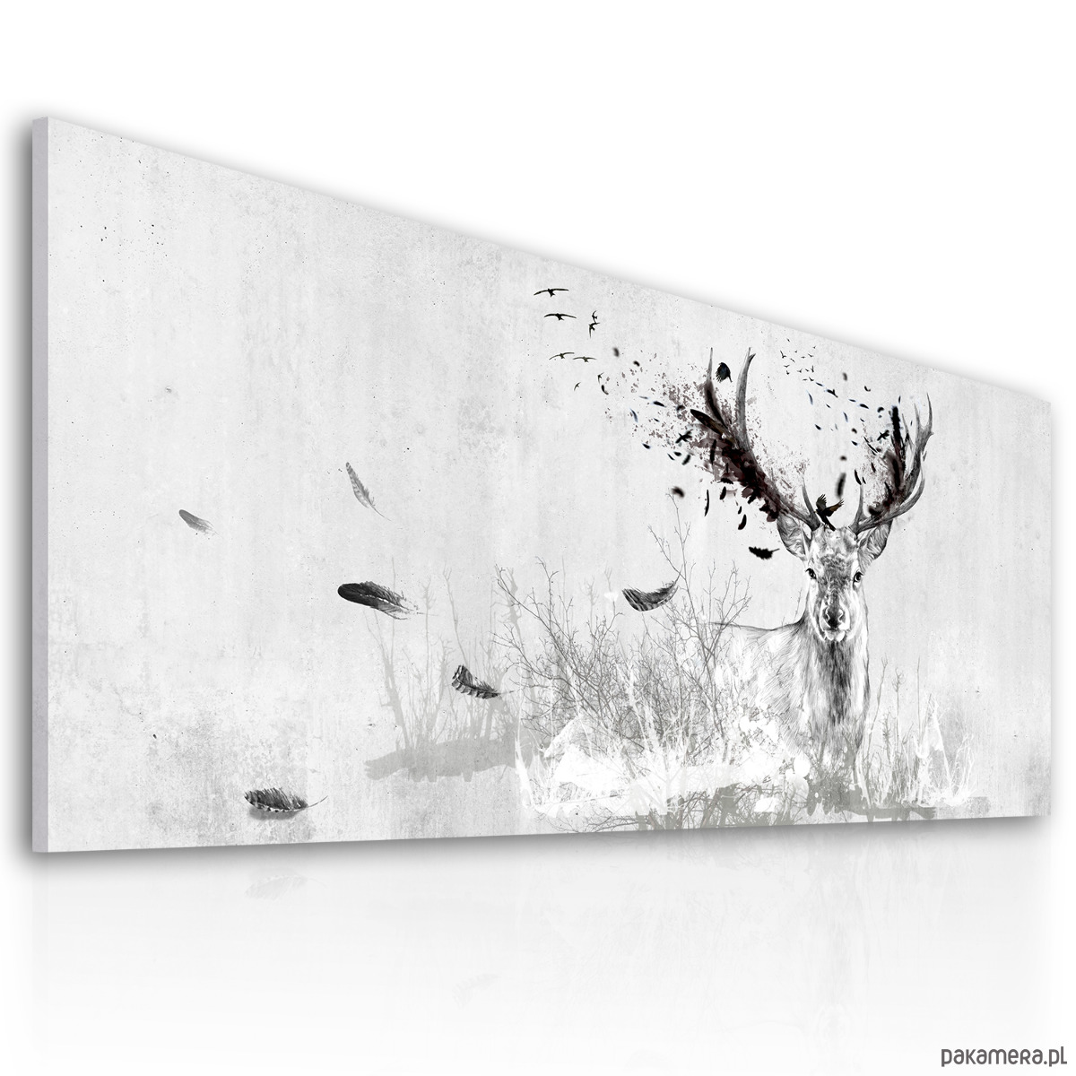 Grafika na płótnie Jeleń -piórka - 150x60cm