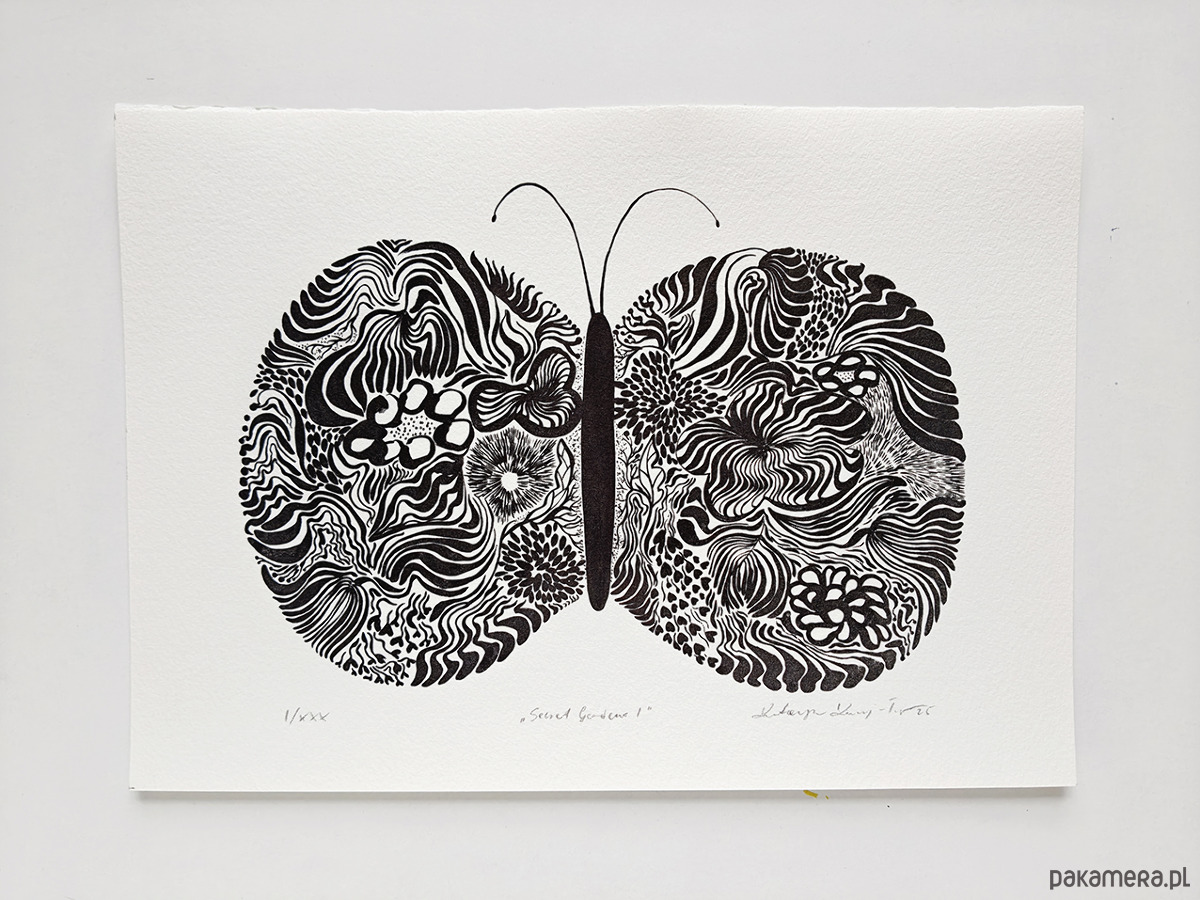 Grafika giclee SECRET Gardens I, grafika z motylem