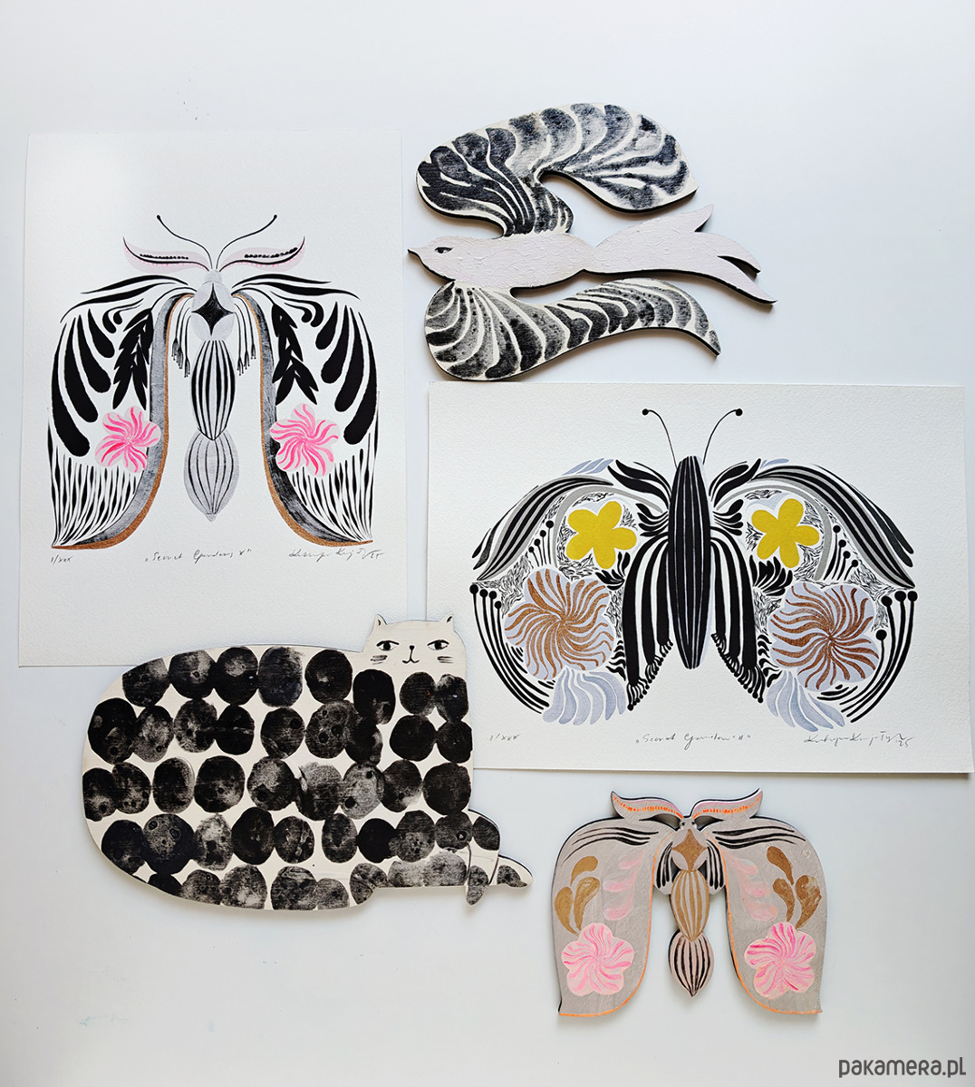 Interpretuje je na własny sposób, najczęściej na subtelne, organiczne formy, które przekształcam w grafiki, obrazy, wzory.