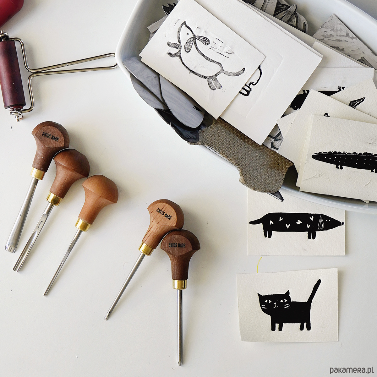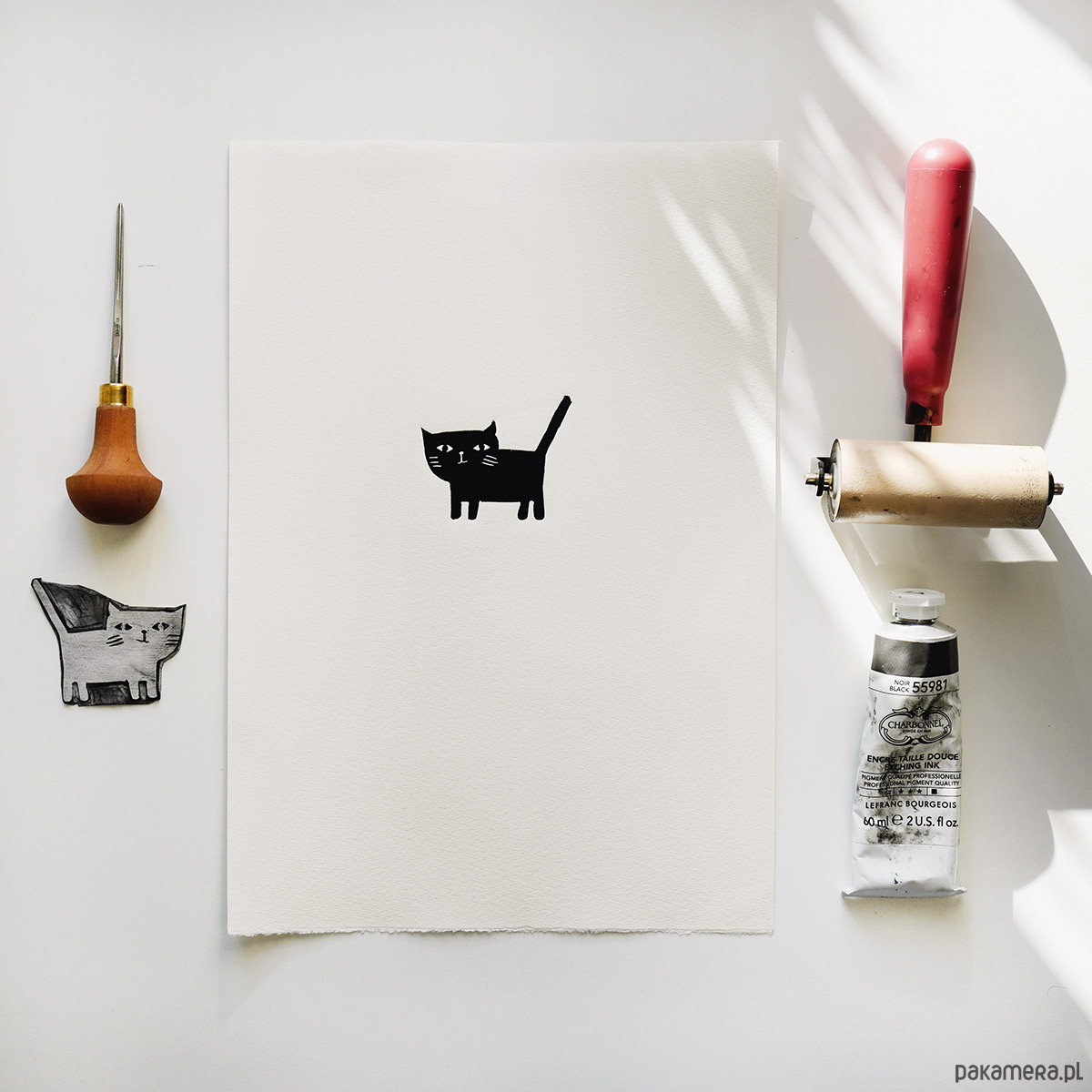 Ręcznie drukowany linoryt na czerpanym papierze graficznym.