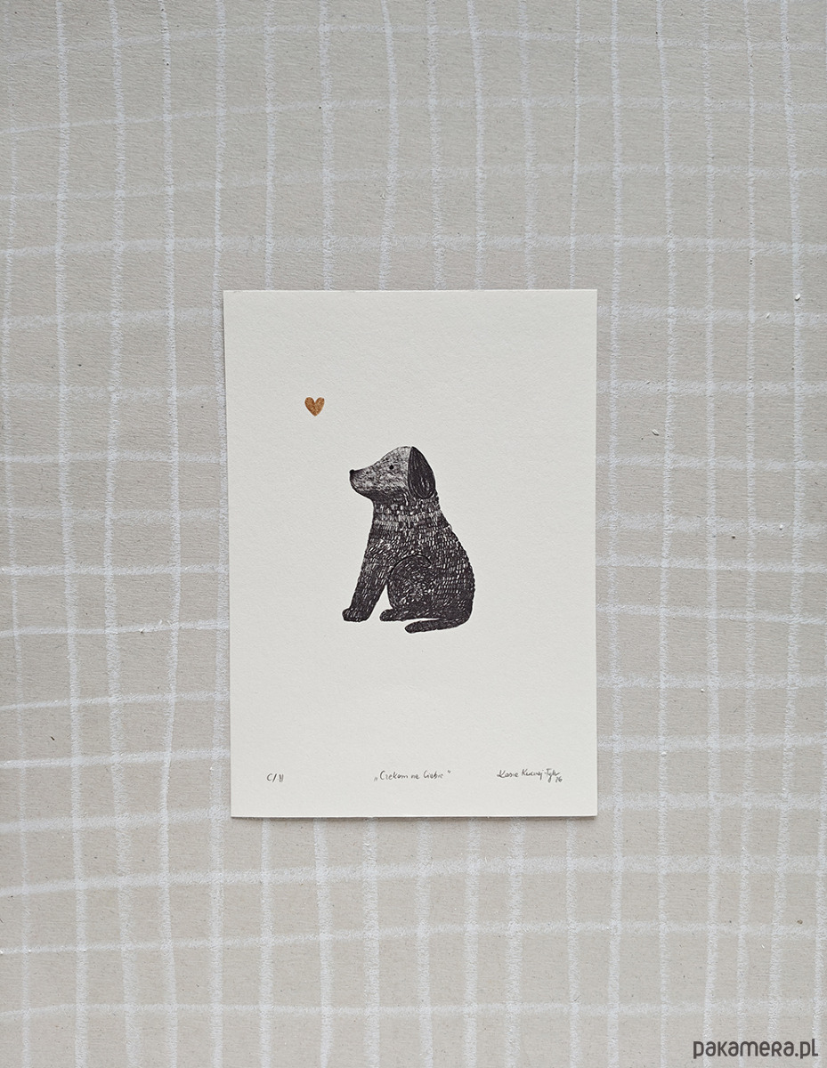 Mała grafika z pieskiem "Czekam na Ciebie"