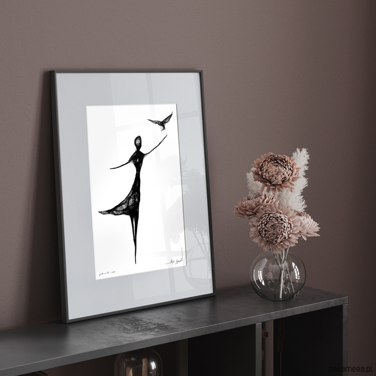 - praca jest oprawiona w czarną, aluminiową ramę oraz grafitowe passe-partout;