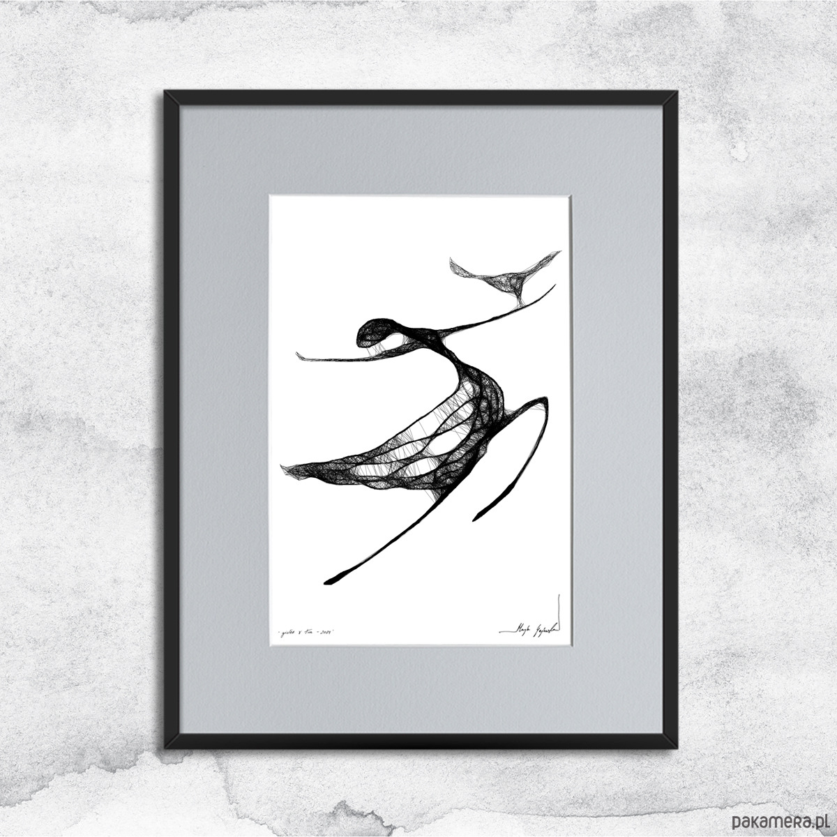 - praca jest oprawiona w czarną, aluminiową ramę oraz grafitowe passe-partout;